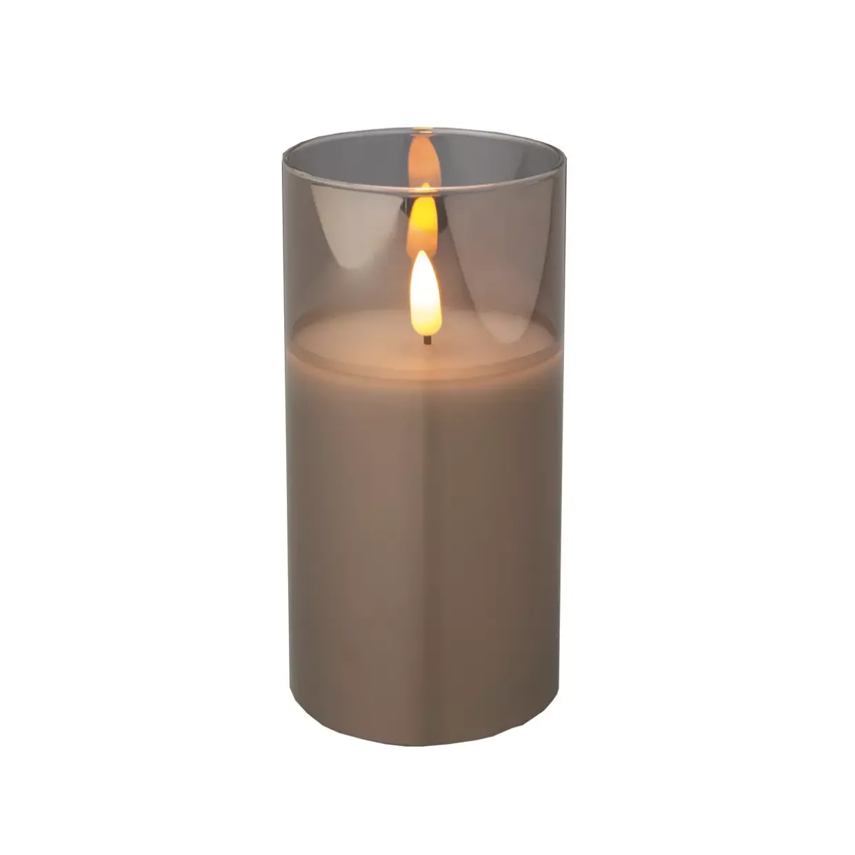 LED Kerze Wachs Glas BO Indoor, LED Kerze Wachs Glas BO Indoor, rauchgrau/warmweiss, dia7.50-H15.00cm-1L, glass