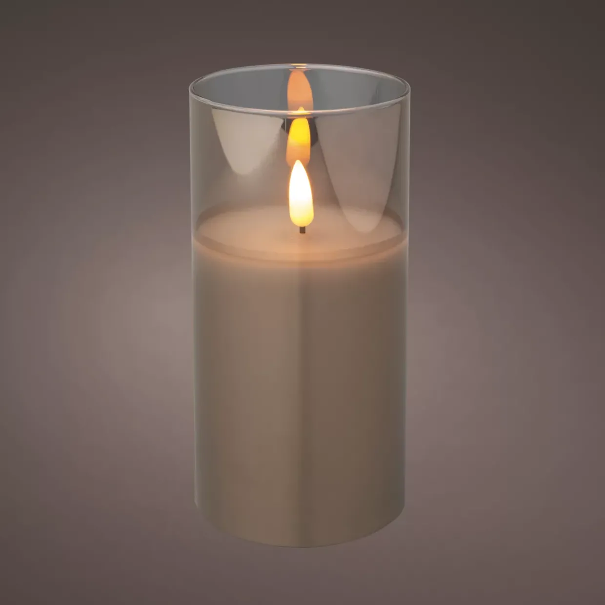 Ein zylindrisches Design, das sich nahtlos in moderne Wohnräume einfügt, zeichnet diese LED-Kerze aus. Die Kombination aus rauchgrauem und warmweißem Licht verleiht jedem Raum eine gemütliche, festliche Atmosphäre, ideal zur Weihnachtszeit. Gefertigt aus hochwertigem Glas, bietet dieses Modell nicht nur ästhetischen Genuss, sondern auch Sicherheit und Langlebigkeit.
