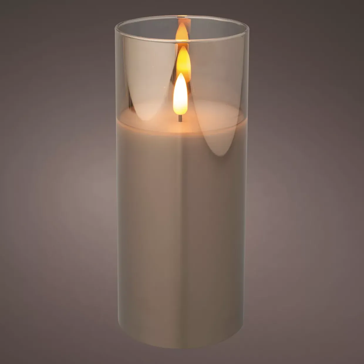 LED Kerze Wachs Glas BO Indoor, LED Kerze Wachs Glas BO Indoor, rauchgrau/warmweiss, dia7.50-H17.50cm-1L, glass