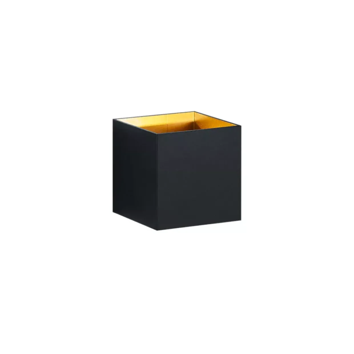 Schaffen Sie moderne Lichtakzente und ein stimmungsvolles Ambiente mit der kubusförmigen Wandleuchte LOUIS. Über einen oberen und einen unteren Lichtaustritt, wird ein effektvoller Lichtkegel gestaltet und ein harmonisches Gesamtbild kreiert. Integriert an der Wand in Ihrem Wohnraum oder dekorativ im Flurbereich oder Treppenaufgang in Szene gesetzt, wird der Anwendungsbereich angenehm erhellt. Der Kubus hat eine Größe von 10x10x10 cm. Die Leuchte aus Metall erscheint außen in schwarz-matt und ist innen goldfarbig gehalten. Darüber hinaus verfügt die Leuchte über eine moderne LED Technologie, die sich durch eine hohe Lichtqualität und Energieeffizienz auszeichnet. Im Vergleich zu herkömmlichen Halogen Leuchtmitteln lassen sich bis zu 80% der Energiekosten sparen. Zusätzlich haben LED Lichtquellen eine lange Lebensdauer, produzieren weniger Wärme und schonen die Umwelt.