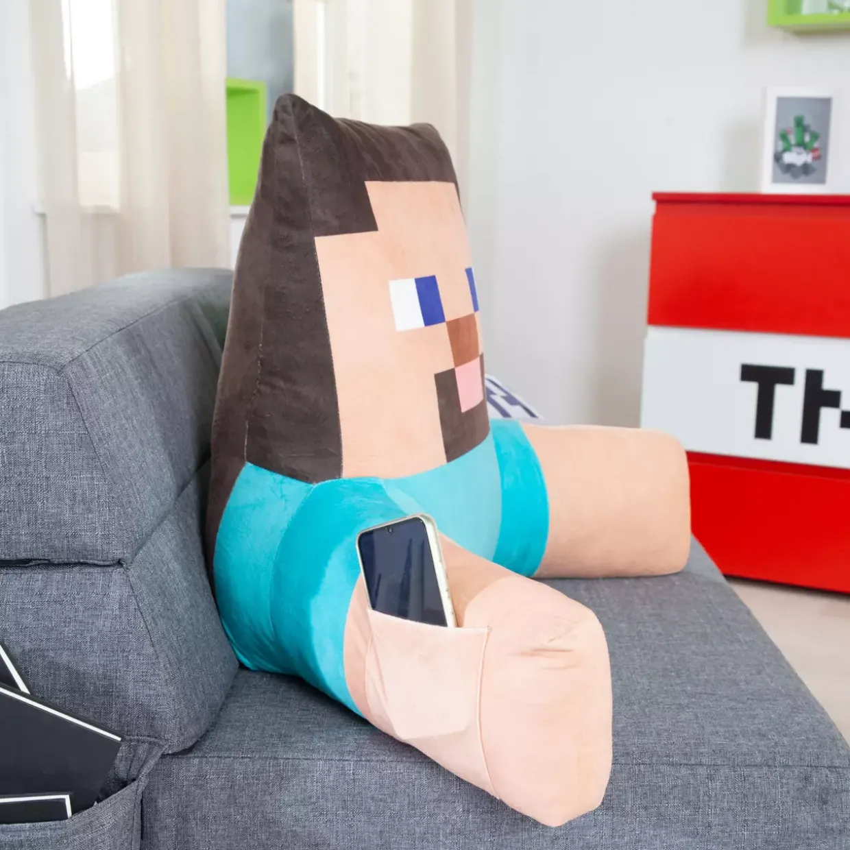 Das Steve Lesekissen aus Minecraft ist das perfekte Accessoire für alle Fans des beliebten Spiels, die es sich gerne gemütlich machen und gleichzeitig ihre Liebe zu Minecraft zeigen möchten. Das Kissen überzeugt durch seine kuschelweiche, samtige Oberfläche, die sich angenehm auf der Haut anfühlt und für ein entspannendes Liegegefühl sorgt. Neben dem gemütlichen Design punktet das Lesekissen mit einer praktischen Handytasche. Hergestellt aus pflegeleichtem Polyester, ist das Lesekissen besonders strapazierfähig und einfach zu reinigen. Ob durch tägliche Nutzung oder beim intensiven Spielen – das Kissen bleibt formstabil und ist jederzeit bereit für den nächsten Einsatz.