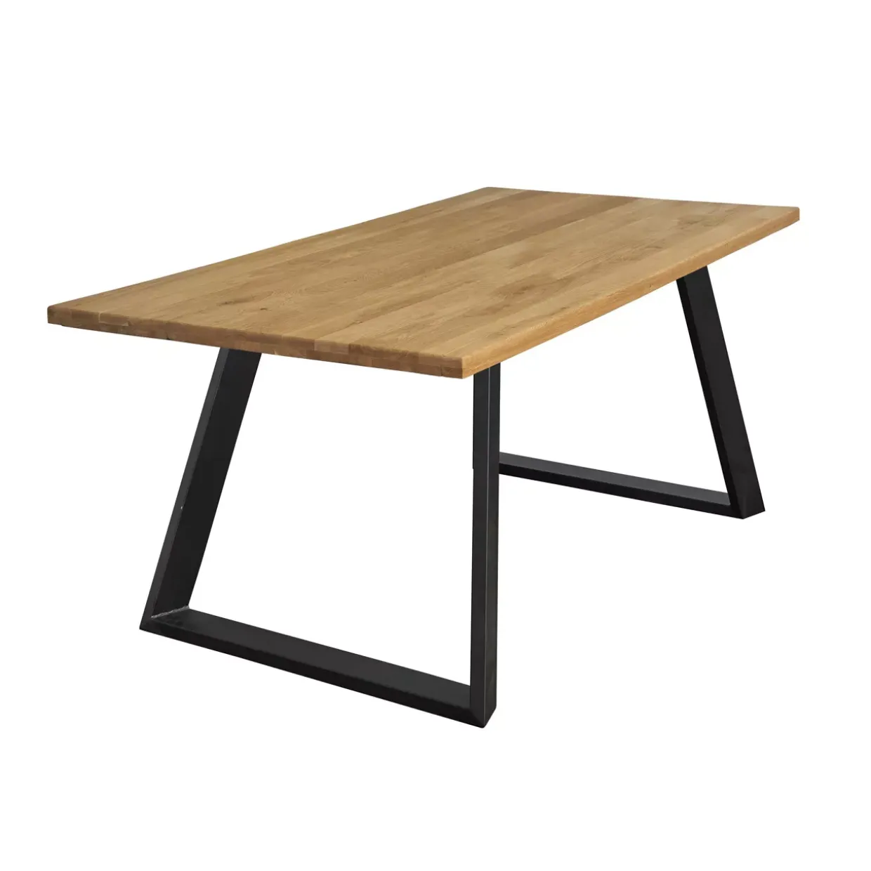 Die Tischplatte aus Eiche keilgezinkt besticht durch ihre natürliche Schönheit und verleiht jedem Essbereich eine warme, einladende Atmosphäre. Der Esstisch im konventionellen Stil kombiniert gekonnt die robuste Eleganz von Eichenholz mit der Stabilität eines Metallgestells. Eine gerade Kante der Tischplatte sorgt für einen zeitlosen Look und fügt sich harmonisch in verschiedenste Einrichtungsstile ein.
