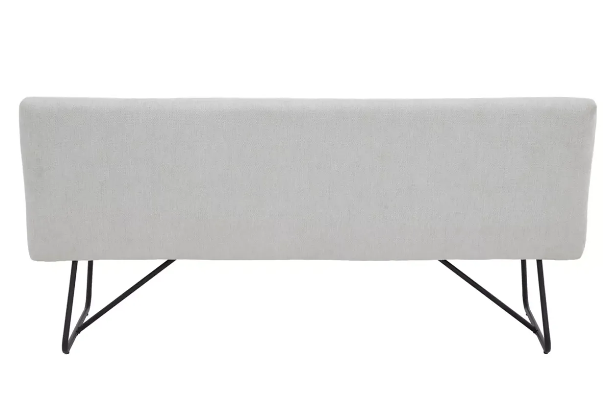 Zeitgemäße Eleganz kennzeichnet die moderne Sitzbank Kumba. Diese stilvolle Sitzgelegenheit vereint die schlichte Farbgebung von Beige und Schwarz, die sich harmonisch in unterschiedlichste Wohnumgebungen einfügt. Der Einsatz von Stoff und Metall als Materialien verleiht ihr eine ansprechende Balance zwischen Komfort und Stabilität.Ein besonderes Highlight ist die pulverbeschichtete Oberfläche, die nicht nur für einen edlen Look sorgt, sondern auch eine bemerkenswerte Langlebigkeit gewährleistet. Diese Behandlung schützt das Metall vor Korrosion und Kratzern, was die Pflege der Sitzbank erheblich erleichtert.Das Design der Sitzbank ist durch klare Linien und eine minimalistische Formensprache geprägt, die den modernen Stil perfekt verkörpert. Diese Eigenschaften machen sie zu einer ausgezeichneten Wahl für zeitgemäße Einrichtungen, die Wert auf Funktionalität und Ästhetik legen. Ob im Wohnzimmer, im Flur oder im Schlafzimmer – die Vielseitigkeit der Kumba Sitzbank eröffnet zahlreiche Einsatzmöglichkeiten. Sie lädt dazu ein, einen Moment innezuhalten und Platz zu nehmen, während sie gleichzeitig einen stilvollen Akzent setzt.Wer auf der Suche nach einer modernen Sitzlösung ist, findet in der Kumba Sitzbank ein durchdachtes und geschmackvolles Möbelstück, das sowohl optisch als auch funktional überzeugt.