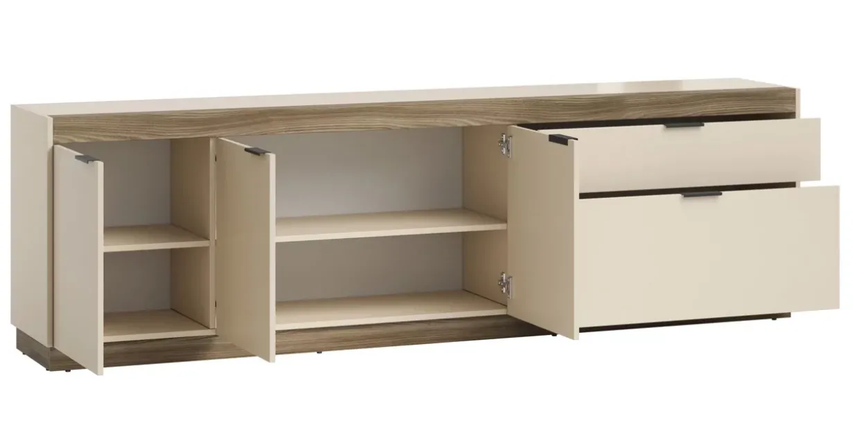 Der Stil Scandi verleiht dem Raum eine ruhige und elegante Atmosphäre. Im sandgrauen Farbton gehalten, fügt sich das Lowboard harmonisch in verschiedenste Wohnkonzepte ein. Diese Farbwahl unterstützt die klare und minimalistische Gestaltung, die typisch für den skandinavischen Stil ist. Hergestellt aus einer Kombination von Holzwerkstoff und Metall, vereint das Lowboard Langlebigkeit mit einem ästhetischen Design. Die Verwendung von Holzwerkstoffen sorgt für eine warme und einladende Optik, während die Metallelemente Stabilität und einen modernen Touch hinzufügen. Vielseitigkeit beschreibt die Funktionalität dieses Möbelstücks am besten. Es bietet ausreichend Stauraum für elektronische Geräte und andere Gegenstände, die Sie ordentlich verstauen möchten. Die klare Linienführung und der schlichte Aufbau machen es zu einem idealen Begleiter in jedem Wohnzimmer. Ein Lowboard ist mehr als nur ein funktionales Möbelstück. Es trägt zur Gestaltung eines Raumes bei und kann dessen Gesamtwirkung entscheidend beeinflussen. Die sorgfältige Materialauswahl und das durchdachte Design sorgen dafür, dass es sowohl optisch als auch praktisch überzeugt. Entdecken Sie, wie dieses Möbelstück Ihre Einrichtung aufwerten kann und Ihrem Zuhause eine besondere Note verleiht.