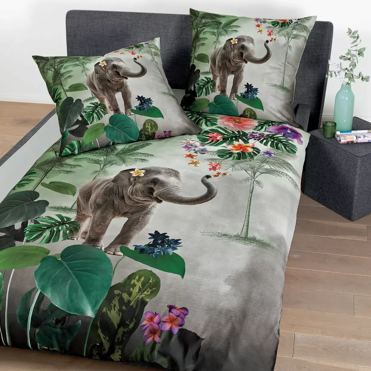 Eine farbenfrohe Note bringt das moderne Design der Bettwäsche „modern art“ in Ihr Schlafzimmer. Die Kombination aus Tier- und floralen Mustern verleiht diesem Textil aus hochwertigem Mako-Satin einen einzigartigen Charakter. Ganzjährig verwendbar, bietet die Baumwoll-Bettwäsche nicht nur ästhetischen Genuss, sondern auch hohen Komfort.