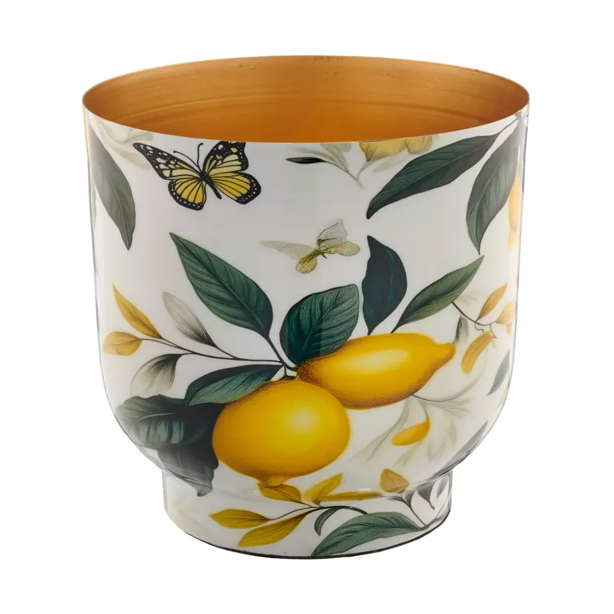 Ein Hauch von Modernität verleiht dem INSTYLE Metallgefäß seinen unverwechselbaren Charme. Die leuchtende gelbe Farbe bringt nicht nur Helligkeit in jeden Raum, sondern setzt auch einen stilvollen Akzent in Ihrer Einrichtung. Als ganzjährig einsetzbares Dekorationsobjekt passt es sich mühelos jeder Saison an und bleibt stets aktuell.Gefertigt aus robustem Eisen, verspricht das Metallgefäß Langlebigkeit und Stabilität. Eisen ist bekannt für seine Widerstandsfähigkeit, was dieses Gefäß zu einer verlässlichen Wahl für den langfristigen Gebrauch macht. Ob im Wohnzimmer, auf der Terrasse oder im Büro – das Metallgefäß fügt sich harmonisch in jeden Raum ein und bietet vielseitige Einsatzmöglichkeiten.Mit seinem modernen Stil spricht es all jene an, die Wert auf zeitgemäße und ansprechende Gestaltung legen. Seine schlichte Eleganz kombiniert mit der auffälligen Farbe macht es zu einem besonderen Blickfang, der jedem Raum Lebendigkeit verleiht.Das INSTYLE Metallgefäß ist mehr als nur ein dekoratives Element; es ist ein Statement für modernes Design und hochwertige Materialien. Lassen Sie sich von seiner Vielseitigkeit und seinem ästhetischen Reiz überzeugen und integrieren Sie es in Ihr Zuhause oder Ihren Arbeitsplatz als stilvolles Accessoire.