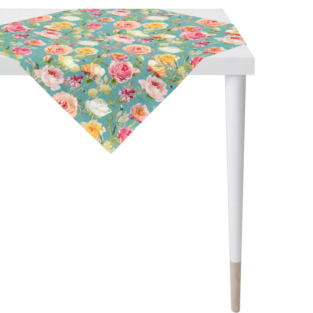 Ein modernes Highlight für Ihren Tisch: Die quadratische Tischdecke in petrol und bunten Tönen setzt farbenfrohe Akzente in Ihrem Zuhause. Perfekt für den Sommer, bringt sie mit ihrem floralen Muster eine frische und lebendige Atmosphäre in jeden Raum. Gefertigt aus einem hochwertigen Mischgewebe, vereint sie die besten Eigenschaften verschiedener Textilien und sorgt für eine angenehme Haptik.