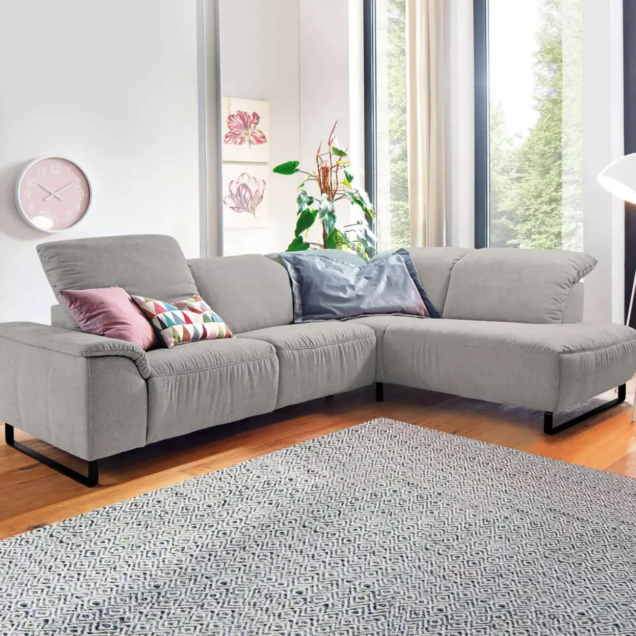 Erleben Sie die elegante Verbindung von Funktionalität und Design mit der Atla MONDO Polstergarnitur. Die Kufenfußform verleiht diesem Möbelstück eine moderne Leichtigkeit, die in jedem Raum Akzente setzt. In den Farben Famous Silver und Schwarz Matt erhältlich, passt sie sich flexibel an verschiedene Einrichtungsstile an.Der Stoffbezug kombiniert mit hochwertigen Metallelementen schafft eine harmonische Balance zwischen Komfort und Stabilität. Die manuelle Kopfteilverstellung ist ein besonderes Highlight und ermöglicht es Ihnen, den Sitzkomfort individuell anzupassen. So können Sie jederzeit Ihre optimale Sitzposition finden und den Alltagsstress hinter sich lassen.Die Polsterung besteht aus PUR-Schaum, der für seine Langlebigkeit und Formbeständigkeit bekannt ist. Dadurch bietet die Polstergarnitur nicht nur einen hohen Sitzkomfort, sondern behält auch über Jahre hinweg ihre Form. Der Echtbezug am Rücken gewährleistet, dass dieses Möbelstück auch frei im Raum platziert werden kann, ohne an Eleganz zu verlieren.Diese Polstergarnitur ist nicht nur ein Ort der Entspannung, sondern auch ein stilvolles Statement für jeden Wohnraum. Sie verbindet zeitloses Design mit durchdachter Funktionalität und lädt zum Verweilen ein. Lassen Sie sich von der Kombination aus Ästhetik und Komfort überzeugen.