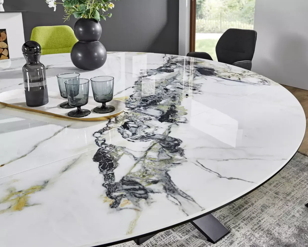 Besondere Beachtung verdient der abgestimmte Vergrößerungsmechanismus. Mit dieser Funktion lässt sich der Tisch mühelos an unterschiedliche Anlässe anpassen. Ob für ein intimes Abendessen zu zweit oder ein geselliges Beisammensein mit Freunden, der Mechanismus sorgt für Flexibilität und Komfort.