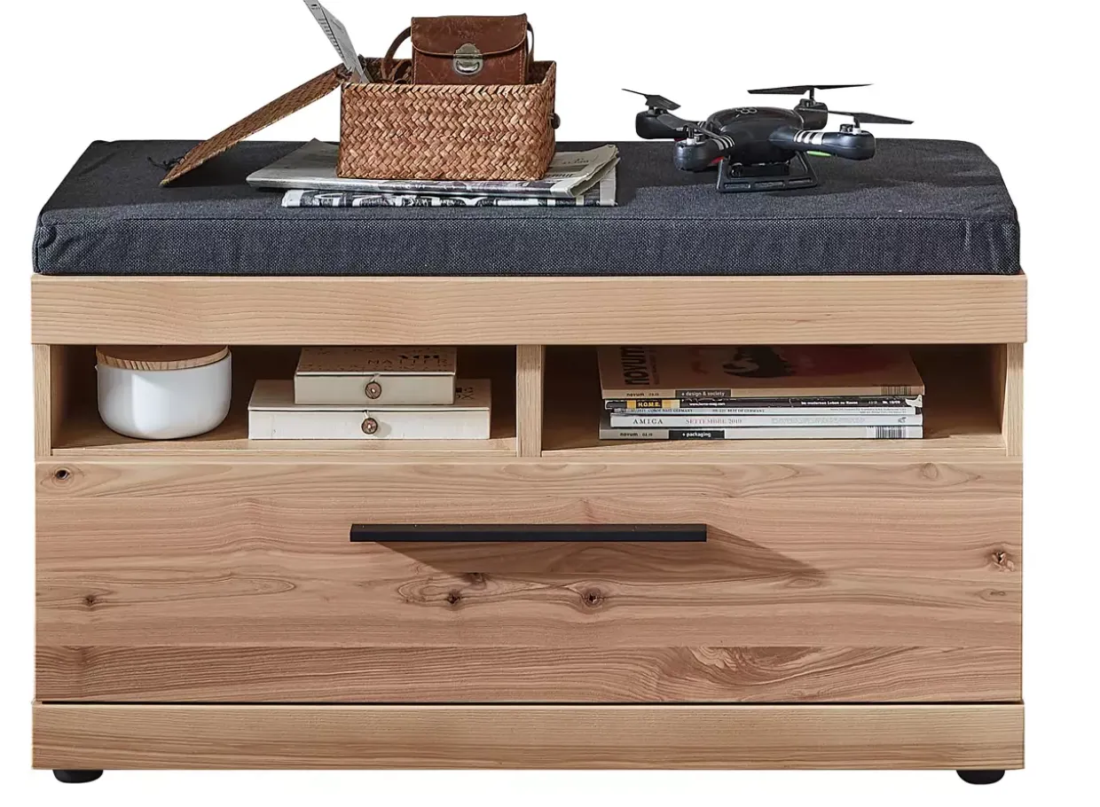 Old Artisan Oak Nachbildung verleiht der Talya Bank einen modernen und gleichzeitig natürlichen Charme. Die klaren Linien und die Kombination aus verschiedenen Materialien wie Holzwerkstoff, Kunststoff, Holz und Metall machen dieses Möbelstück zu einem vielseitigen Begleiter in Ihrem Zuhause. Ein besonderes Highlight ist das Sitzkissen aus 100 Prozent Polyester in einem eleganten Anthrazitton, das nicht nur Komfort, sondern auch Stil bietet.Die Talya Bank fügt sich nahtlos in eine moderne Einrichtung ein und bietet durch ihre Klapptürart eine praktische Möglichkeit zur Aufbewahrung. Ob im Eingangsbereich oder im Wohnzimmer, die Bank bietet nicht nur Sitzgelegenheit, sondern auch Stauraum für alltägliche Dinge. Die Gleiter als Fußform sorgen für einen stabilen Stand und schützen empfindliche Böden.Das Zusammenspiel der Farben Old Artisan Oak Nachbildung, Schwarz und Altesche massiv gebürstet unterstreicht das zeitgemäße Design, während die hochwertigen Materialien für Langlebigkeit und Robustheit stehen. Die Talya Bank ist mehr als nur ein Möbelstück; sie ist ein Statement für Stil und Funktionalität. Lassen Sie sich von der Kombination aus Ästhetik und praktischem Nutzen überzeugen.