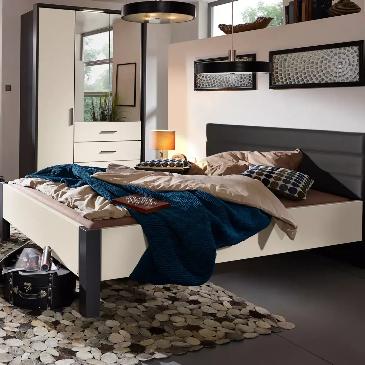 Ein außergewöhnliches Polsterkopfteil in edler Lederoptik basalt verleiht diesem modernen Bett seinen unverwechselbaren Charakter. Die Kombination aus graphit und Champagner Tönen sorgt für ein harmonisches und zugleich stilvolles Ambiente in Ihrem Schlafzimmer. Gefertigt aus hochwertigem Holzwerkstoff, überzeugt das Bett nicht nur durch seine Stabilität, sondern auch durch sein zeitgemäßes Design.