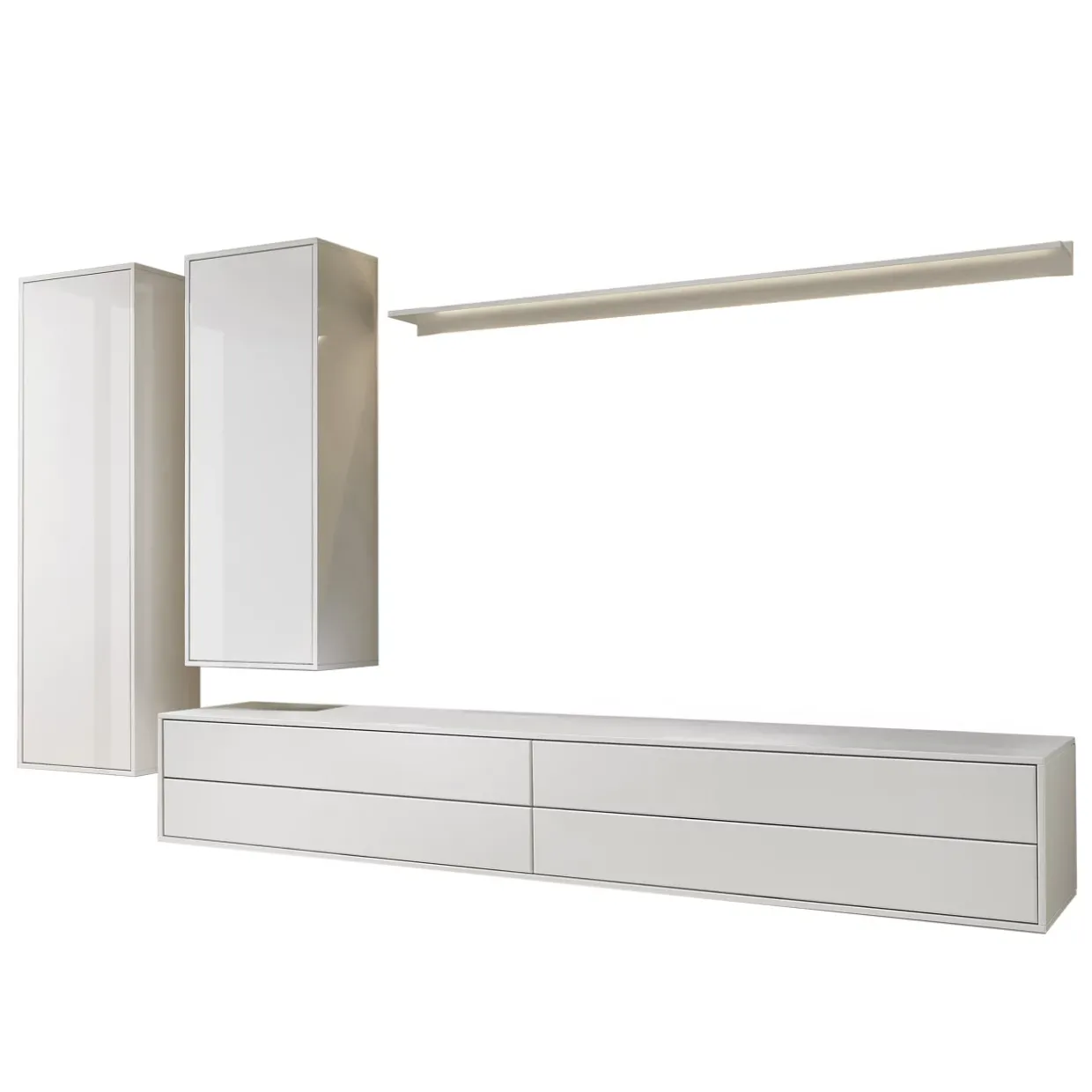 Die Oberfläche der Wohnwand erstrahlt in einem eleganten Lackweiß und verleiht jedem Raum eine moderne Note. Holz als Hauptmaterial sorgt für eine warme und natürliche Atmosphäre. Besonders hervorzuheben ist die innovative Push-To-Open-Funktion, die ein müheloses Öffnen und Schließen der Türen ermöglicht.