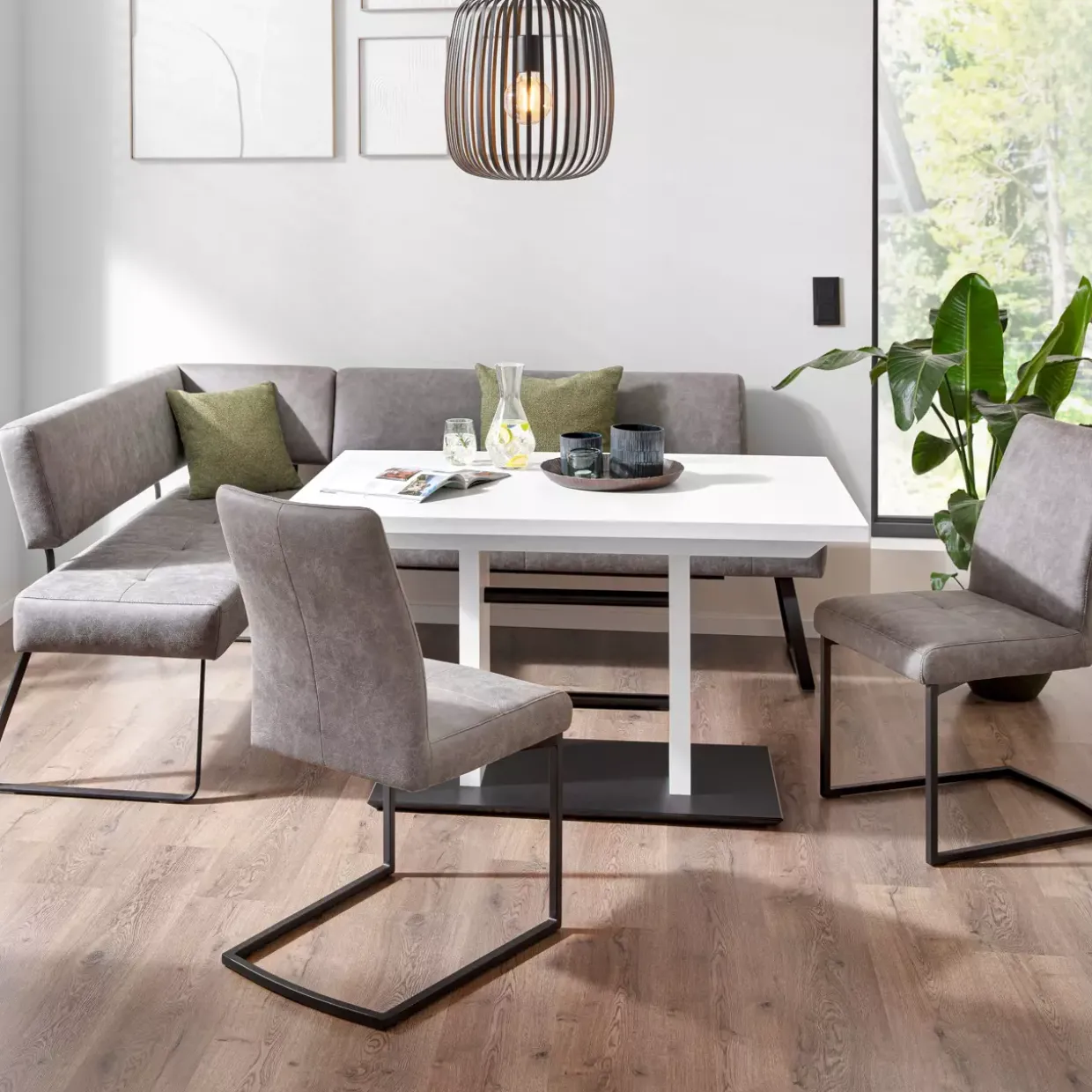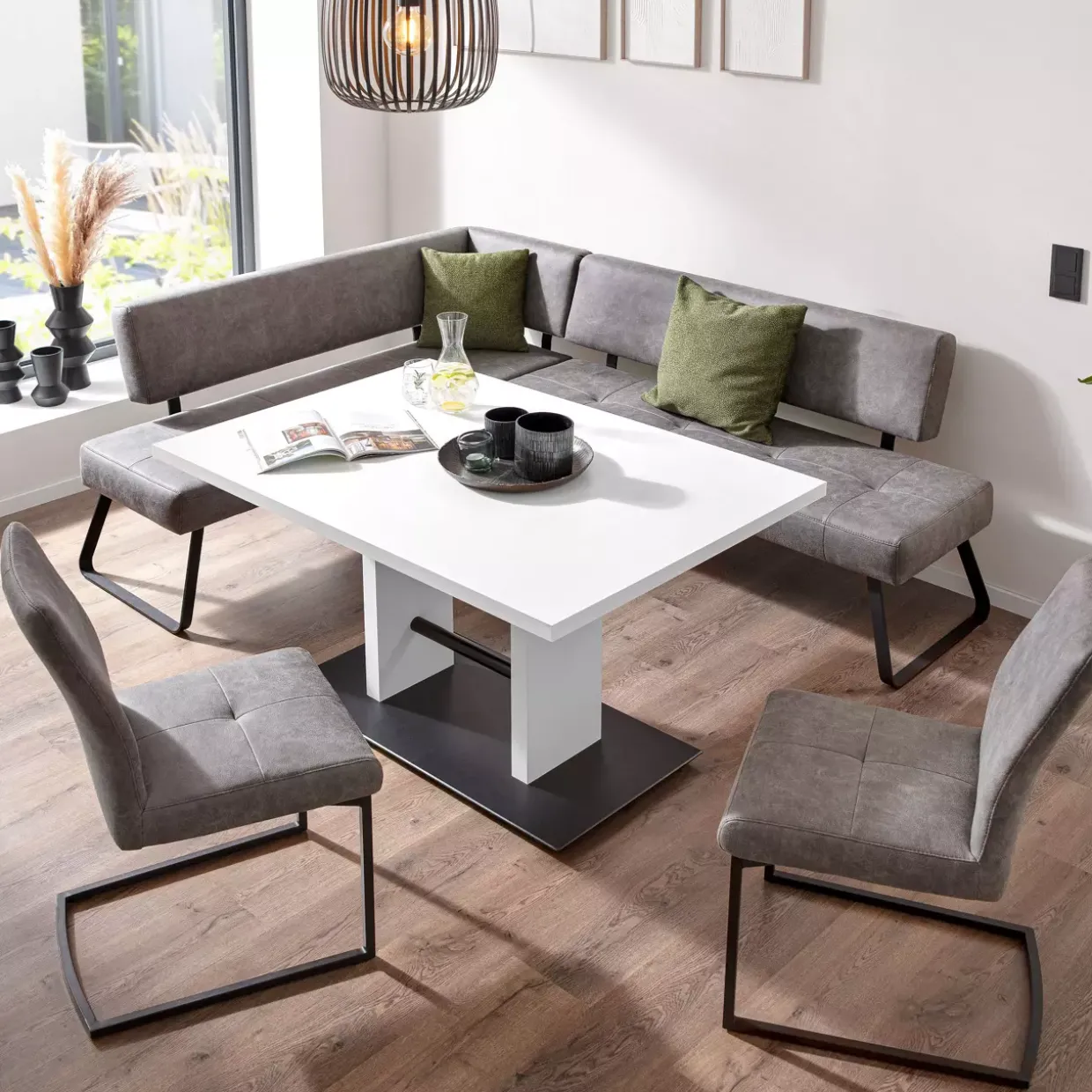 Die Eckbank ist nicht nur ein optisches Highlight, sondern auch ein funktional durchdachtes Möbelstück. Der Einsatz von nachhaltigen und langlebigen Materialien spricht für ihre Qualität und die Fähigkeit, den täglichen Anforderungen mühelos standzuhalten. Die sorgfältige Verarbeitung und die besondere Kombination der Materialien machen die Eckbank zu einem stilvollen Mittelpunkt in jedem modernen Essbereich. Eine Investition, die durch ihre Vielseitigkeit und Langlebigkeit überzeugt.