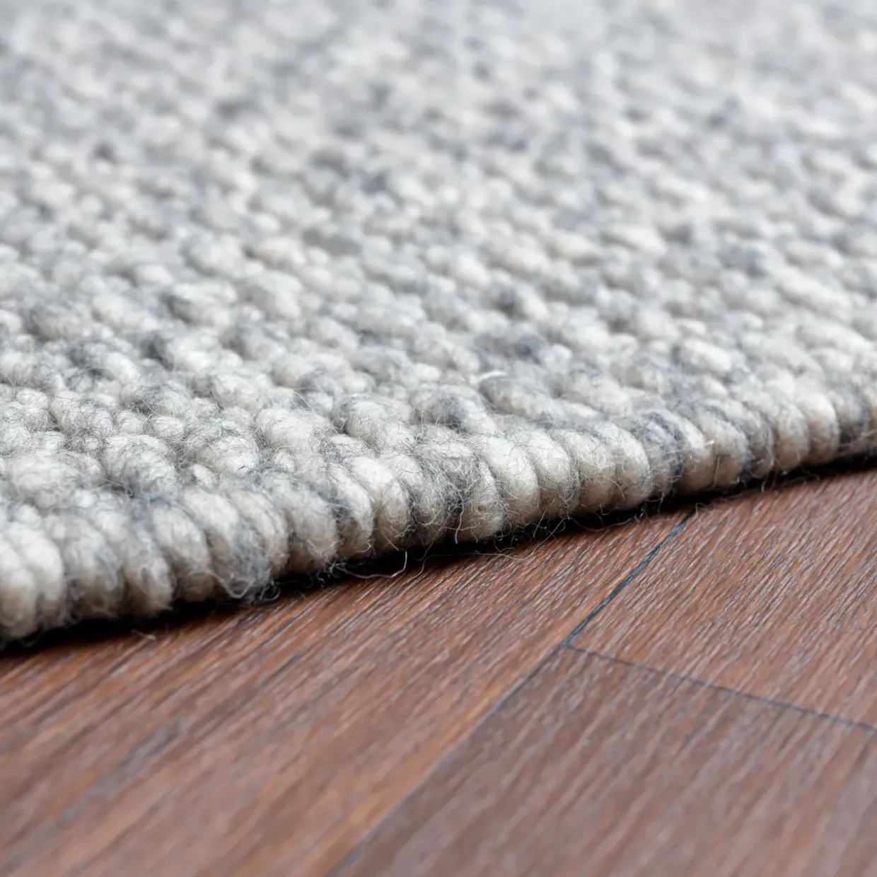Ein Handwebteppich aus natürlichem Material bringt eine warme und einladende Atmosphäre in jedes Zuhause. Die Kombination aus 100% Wollflor und einem Jute-Grundgewebe verleiht diesem Teppich seine einzigartige Struktur und Robustheit. Seine rechteckige Form fügt sich harmonisch in verschiedene Raumkonzepte ein, während die schlichte Grautönung zeitlose Eleganz ausstrahlt.