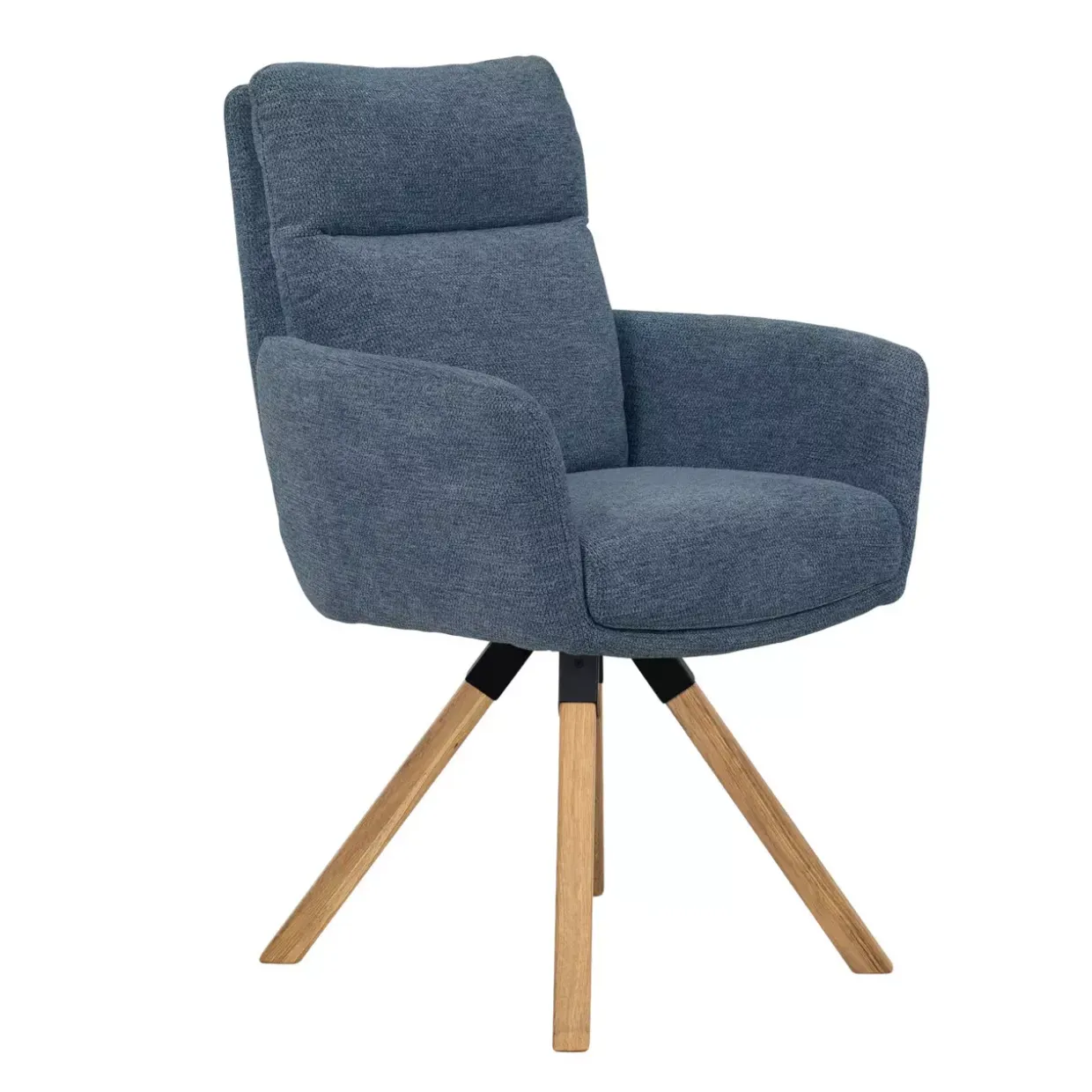 Ein Hauch von Azuro Blau verleiht dem Folara Stuhl aus der MONDO Natur Kollektion eine frische und harmonische Note. Die Kombination aus edlem Eichenholz und stilvollem Stoff schafft ein elegantes Erscheinungsbild, das sich nahtlos in konventionelle Wohnstile einfügt. Besonders hervorzuheben ist die 360 Grad Drehfunktion, die flexible Bewegungen ermöglicht und den Komfort im Alltag erhöht. Die robuste Stativgestell-Fußform sorgt für Stabilität und verleiht dem Stuhl eine moderne Optik. Ein weiteres Highlight ist die hochwertige Polsterung mit Taschenfederkern, die für optimalen Sitzkomfort und Langlebigkeit sorgt. Diese durchdachte Konstruktion bietet eine ausgezeichnete Unterstützung und Bequemlichkeit, selbst bei längerem Sitzen. Die Verwendung von natürlicher Eiche verleiht dem Möbelstück nicht nur eine warme Ausstrahlung, sondern auch eine besondere Widerstandsfähigkeit. Die Kombination dieser Materialien spiegelt eine perfekte Balance zwischen Natur und Design wider, die in jedem Raum eine angenehme Atmosphäre schafft. Dieser Stuhl ist mehr als nur ein Sitzmöbel; er ist ein Ausdruck von Stil und Funktionalität, der in jedem Raum ein Blickfang ist. Entdecken Sie die Möglichkeiten, die dieser Stuhl Ihrem Zuhause bietet, und genießen Sie das Zusammenspiel von Design und Komfort.