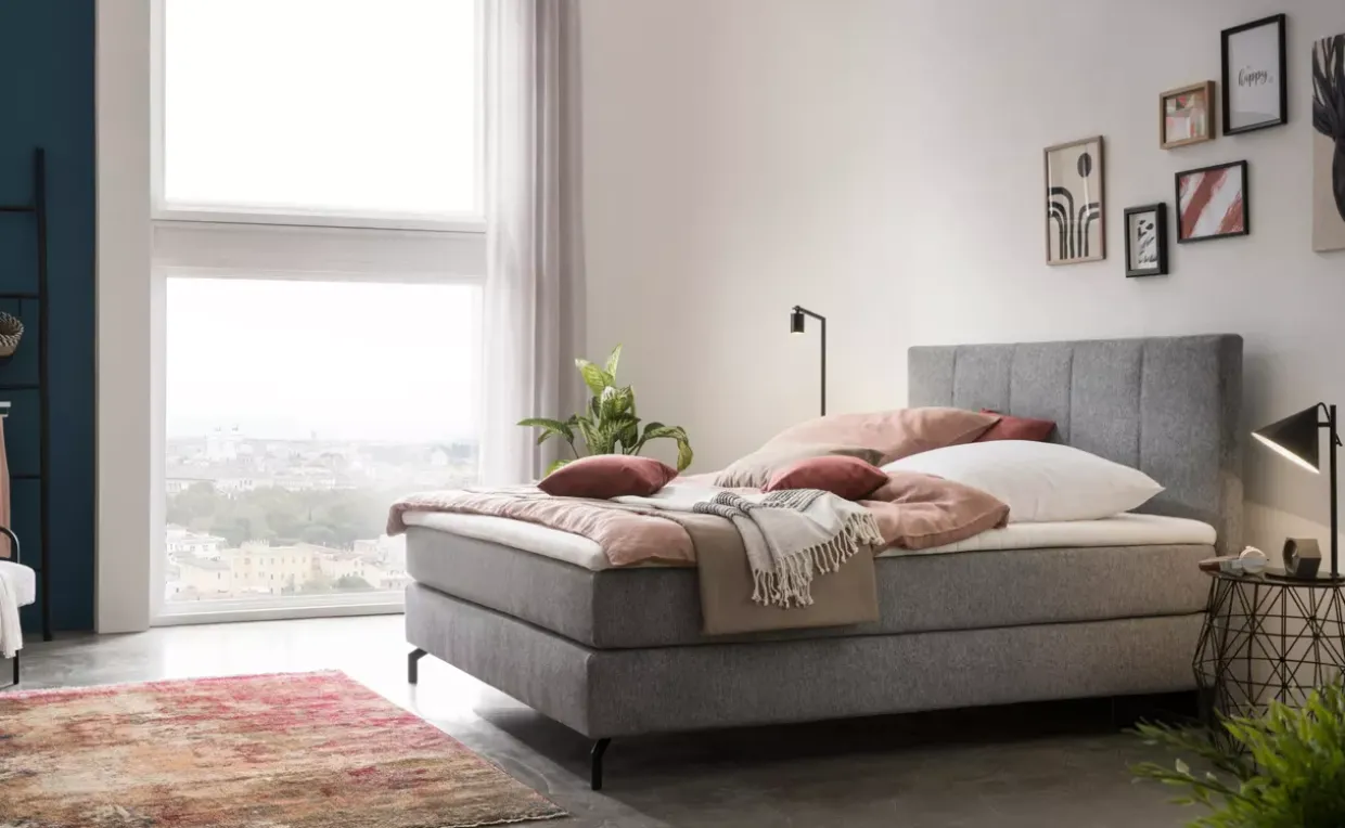 Ein Polsterbett, das Design und Funktionalität geschickt vereint, schafft in Ihrem Schlafzimmer eine Oase der Ruhe und Entspannung. Die subtile Farbgebung harmoniert hervorragend mit verschiedenen Einrichtungsstilen und bietet Ihnen die Möglichkeit, Ihre persönliche Note mit Dekorationen und Textilien zu ergänzen.