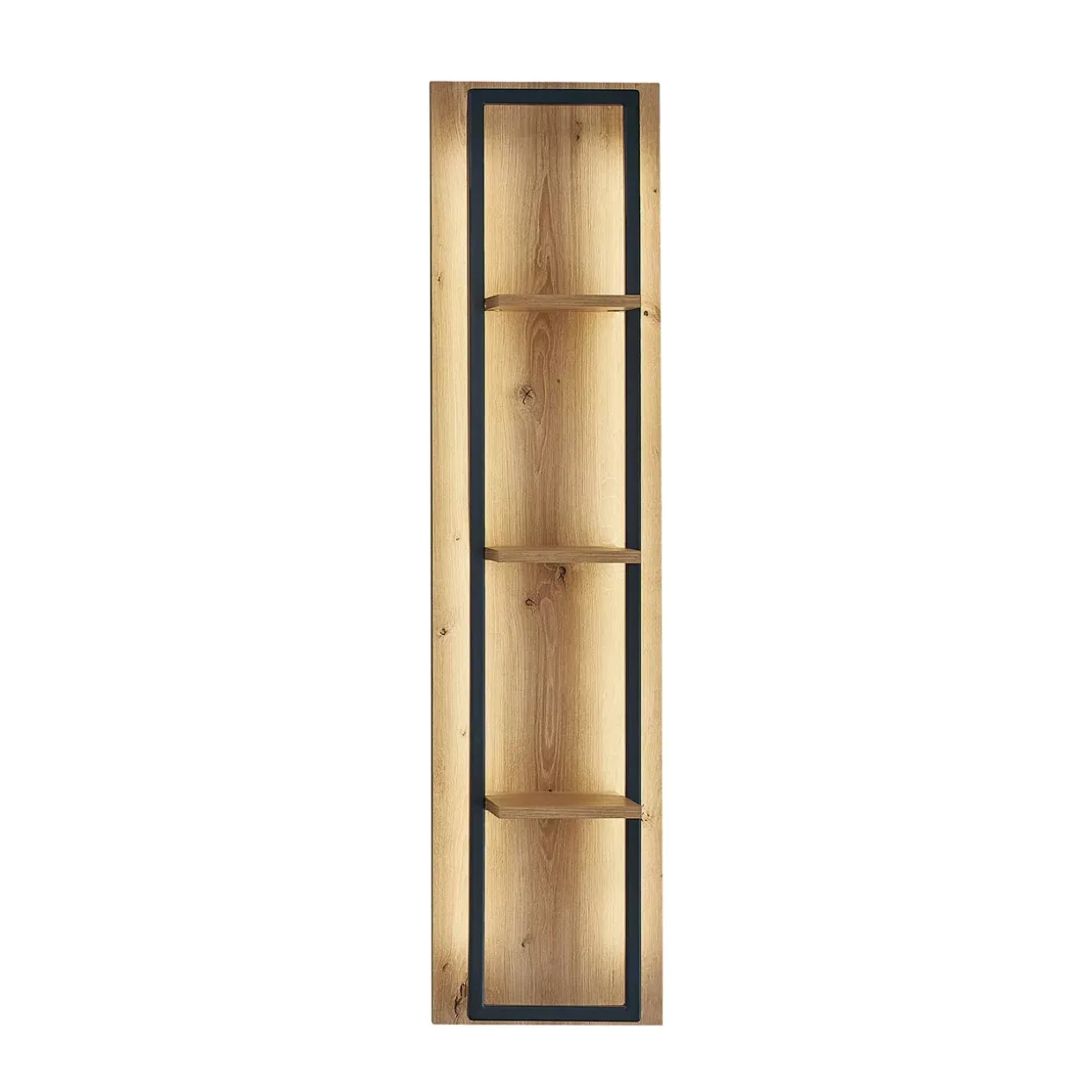 Ein moderner Stil prägt das Lisana Regal, das sich perfekt in zeitgemäße Wohnräume einfügt. Die harmonische Kombination aus Holzwerkstoff und Metall verleiht diesem Möbelstück eine ansprechende und robuste Erscheinung. Besonders hervorzuheben ist das elegante Relingsystem aus Aluminium, das anthrazitgrau gepulvert ist und dem Regal einen besonderen Akzent verleiht.Ein Design, das durch seine schlichte Eleganz besticht, findet in der Farbgebung aus Old Artisan Oak Nachbildung seine Vollendung. Das Zusammenspiel der warmen Holzoptik mit dem kühlen, metallischen Glanz des Aluminiums schafft ein faszinierendes Kontrastspiel, das jedem Raum eine edle Note verleiht.Lisana ist mehr als nur ein Regal; es ist ein Statement für hochwertige Verarbeitung und durchdachtes Design. Die Materialwahl aus robustem Holzwerkstoff und widerstandsfähigem Metall sorgt für Langlebigkeit und Stabilität, die den täglichen Anforderungen mühelos standhält. Ideal für jene, die Funktionalität mit einer ästhetischen Note verbinden möchten, bietet dieses Regal nicht nur Stauraum, sondern auch eine Plattform zur Präsentation Ihrer Lieblingsstücke. In einem modernen Zuhause ist Lisana die richtige Wahl, um Stil und Funktion in Einklang zu bringen.