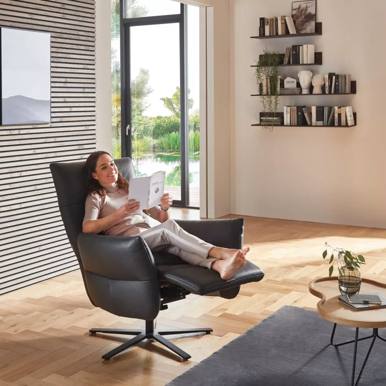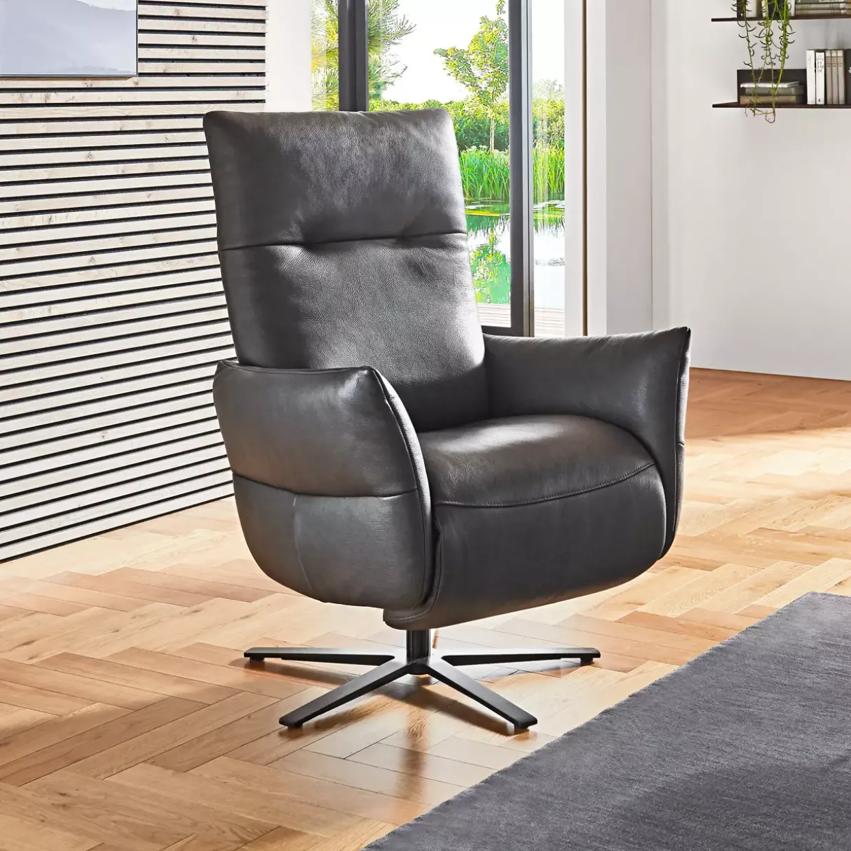 Die Felini MONDO Lounge RelaXX beeindruckt durch ihre moderne Ästhetik und hochwertige Materialien. Ein edles Zusammenspiel von Leder und Metall verleiht diesem Möbelstück eine zeitlose Eleganz. Die anthrazitfarbene Lederoberfläche, bekannt als Vorzugs-Leder Reno, harmoniert perfekt mit den schwarz matt lackierten Metallakzenten und sorgt für ein stilvolles Ambiente in Ihrem Wohnraum.
