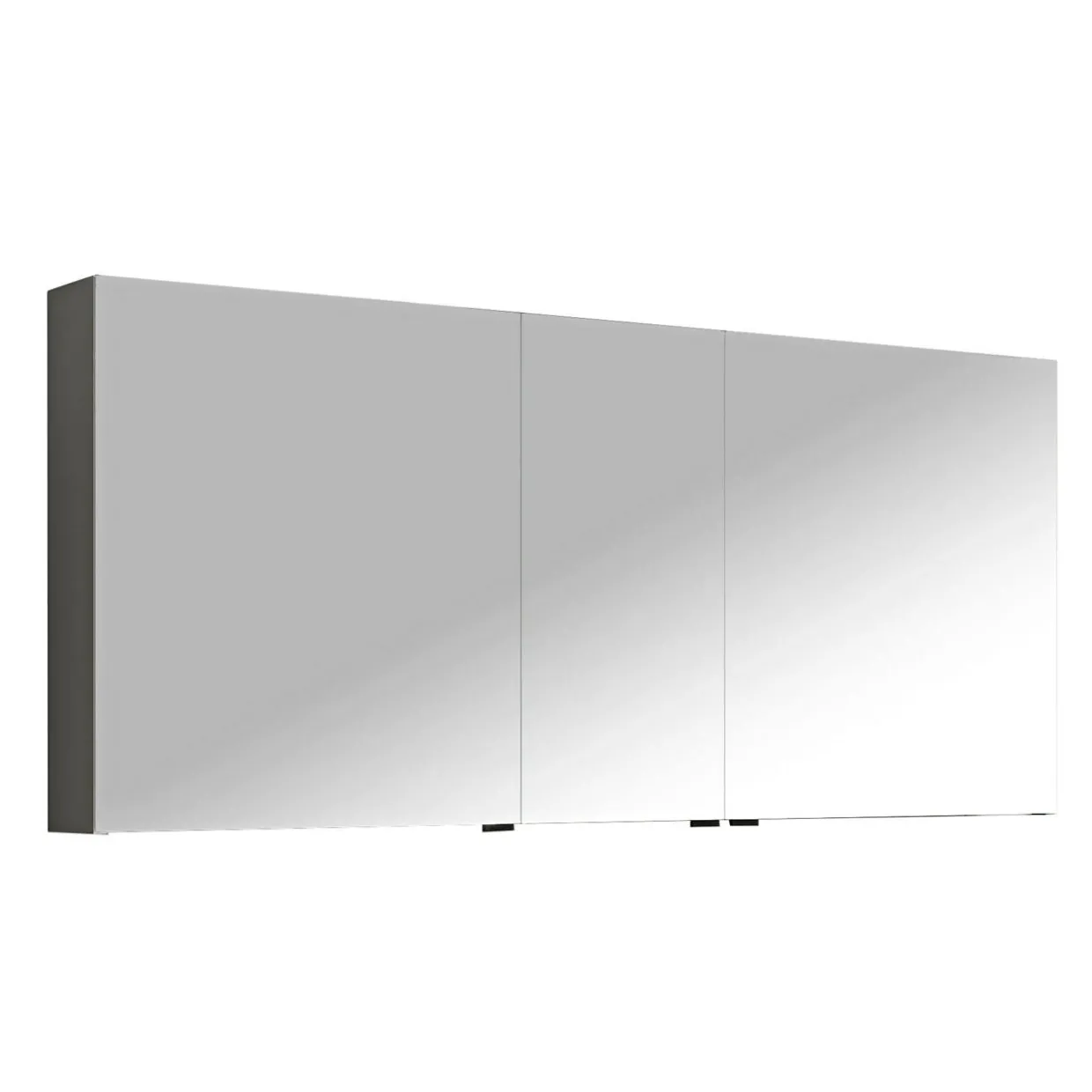 Die drei Doppelspiegeltüren bieten nicht nur großzügigen Stauraum, sondern sind auch mit einem integrierten Dämpfungssystem ausgestattet, das ein sanftes und geräuschloses Schließen ermöglicht. Zwei Mittelwände und sechs Glasfachböden sorgen dafür, dass alle Utensilien ordentlich und übersichtlich verstaut werden können. Die melaminharzbeschichtete Oberfläche bietet Schutz und Langlebigkeit und ist zudem pflegeleicht.