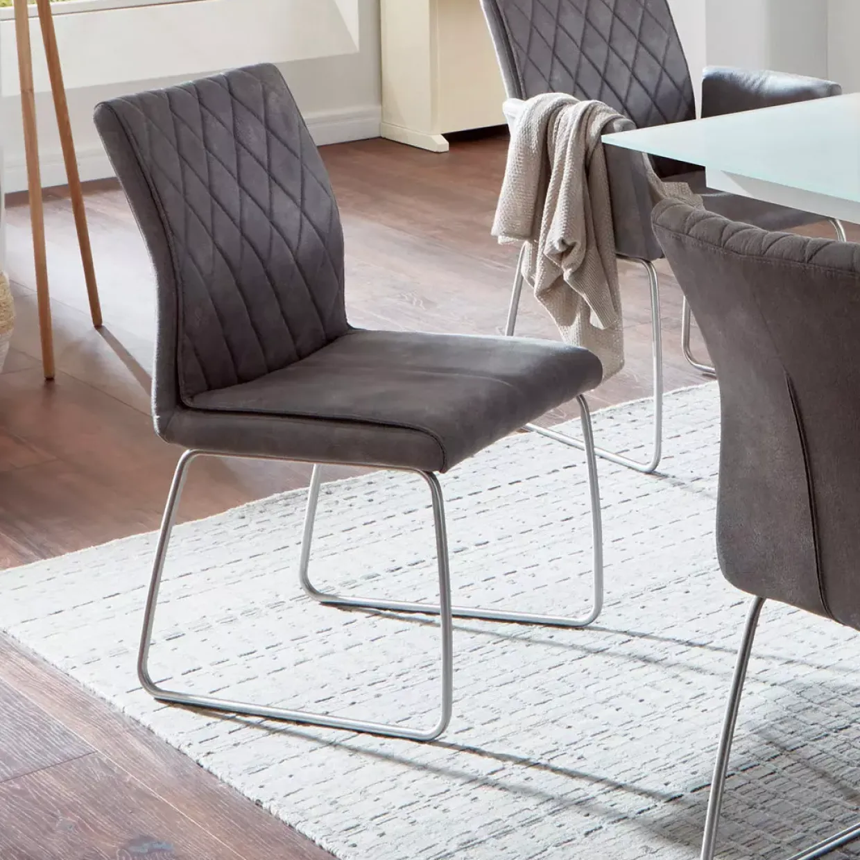Moderne Eleganz trifft auf Funktionalität: Der Moka Stuhl verkörpert beides auf eindrucksvolle Weise. In einer zeitgemäßen Kombination aus Zink hellgrauem Stoff und edlem Edelstahl gehalten, passt dieser Stuhl perfekt in jedes moderne Ambiente. Die Kufenform der Füße verleiht dem Design nicht nur optische Leichtigkeit, sondern sorgt auch für Stabilität und Komfort.