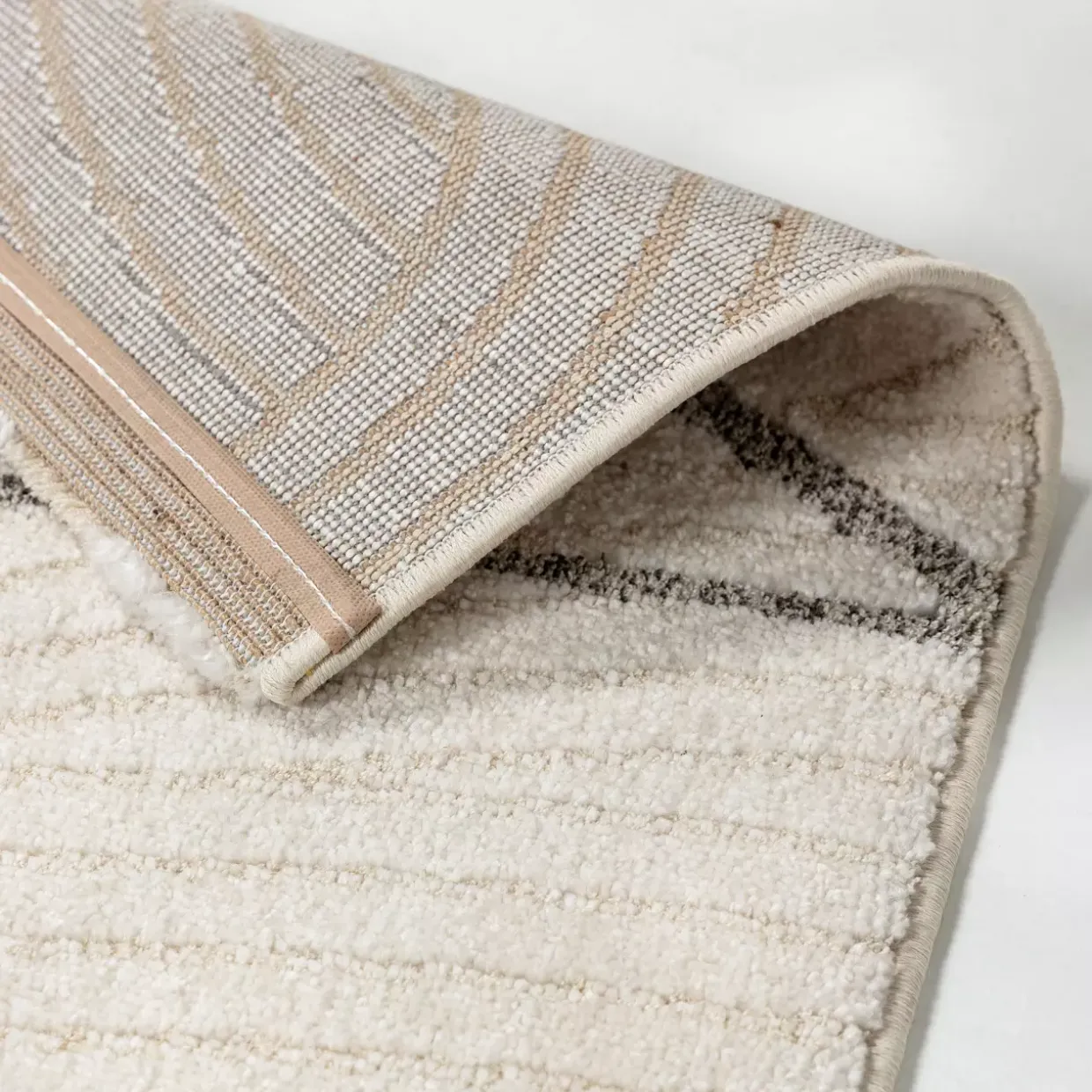 Ein modernes Design trifft auf elegante Schlichtheit. Der rechteckige Webteppich in einem harmonischen Beige-Grau-Ton besticht durch seine zeitlose Ästhetik und fügt sich nahtlos in unterschiedlichste Wohnstile ein. Der Teppich entfaltet seine volle Wirkung durch das geometrische Muster, das sowohl Dynamik als auch Struktur in den Raum bringt.Hergestellt aus hochwertigem Textilmaterial, bietet dieser Teppich nicht nur optische, sondern auch funktionale Vorteile. Die textile Oberfläche sorgt für eine angenehme Haptik und einen behaglichen Trittkomfort, der jeden Raum in eine Wohlfühloase verwandelt. Besonders in modernen Einrichtungsstilen kommt dieser Teppich exzellent zur Geltung und setzt stilvolle Akzente.Die Farbgebung in dezenten Tönen unterstützt eine entspannte Atmosphäre und lässt sich mühelos mit anderen Farben und Möbelstücken kombinieren. Ob im Wohnzimmer, Schlafzimmer oder Büro – dieser Teppich verleiht jedem Raum eine edle Note. Das geometrische Muster verleiht zudem einen Hauch von künstlerischem Flair, ohne dabei aufdringlich zu wirken.Für diejenigen, die Wert auf modernes Design und Qualität legen, stellt dieser Teppich eine ausgezeichnete Wahl dar. Lassen Sie sich von seiner zeitlosen Eleganz und Vielseitigkeit begeistern und schaffen Sie ein stilvolles Ambiente in Ihrem Zuhause.