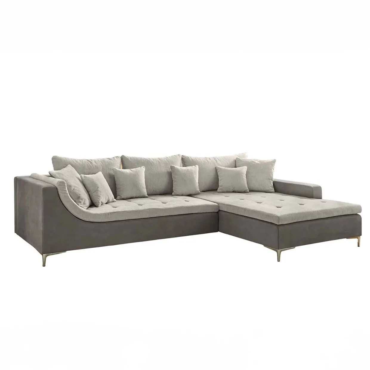 Mit einer stilvollen Kombination aus Chenille grau und Microfaser grau fügt sich die Polstergarnitur harmonisch in verschiedenste Wohnstile ein. Die Chromakzente setzen glänzende Highlights, die jedes Wohnzimmer aufwerten.