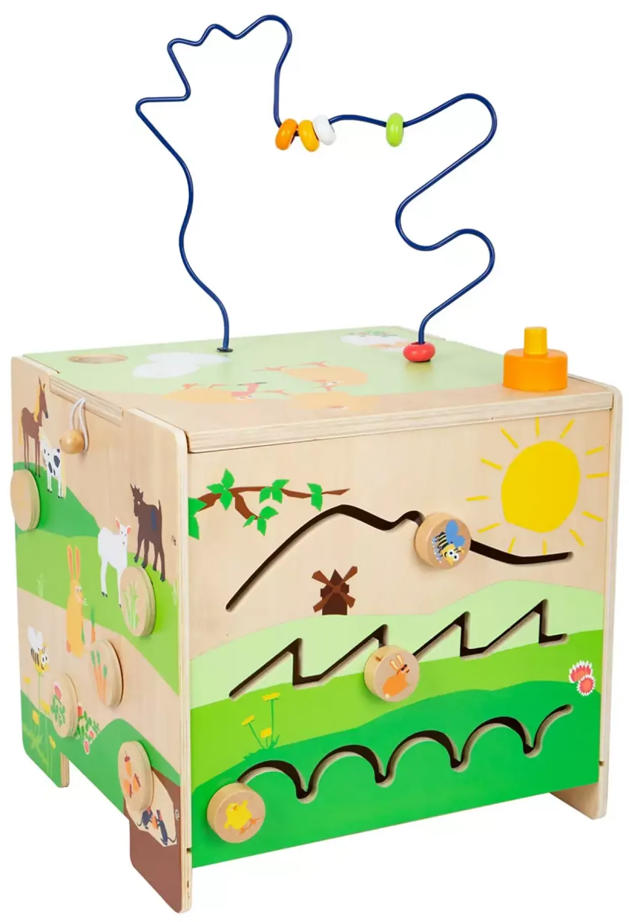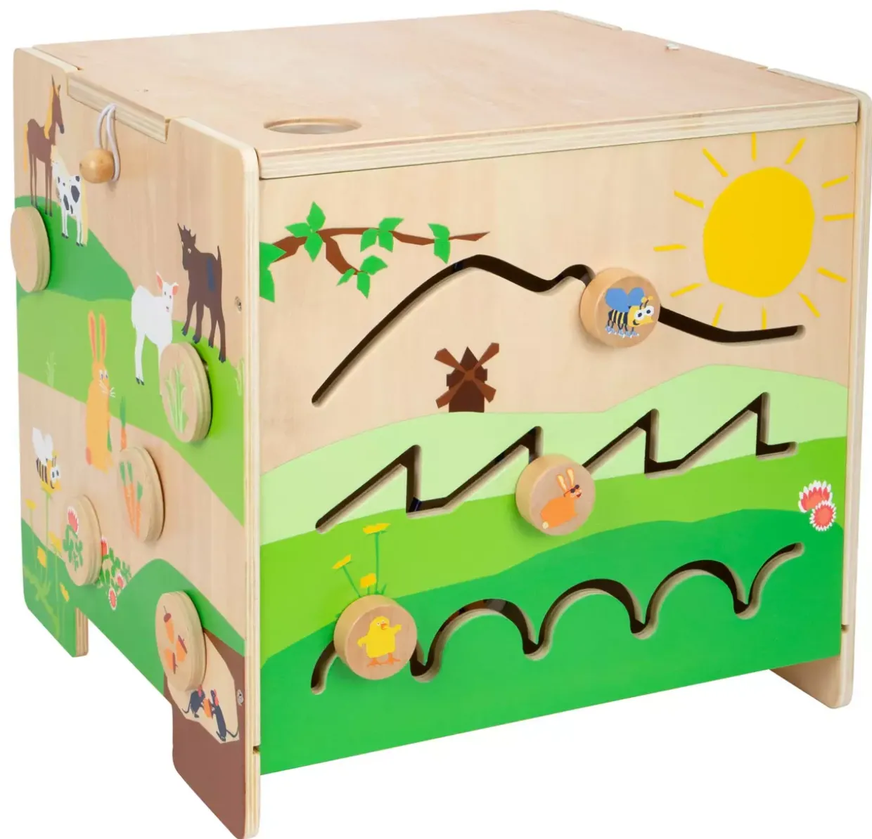 Das Landleben-Modell setzt auf ein durchdachtes Design, das sowohl optisch ansprechend als auch funktional ist. Die bunte Gestaltung zieht die Aufmerksamkeit der Kinder auf sich und lädt zum Entdecken ein. Neben dem spielerischen Aspekt fördert der Würfel die motorischen Fähigkeiten und die Hand-Augen-Koordination der Kinder auf spielerische Weise.