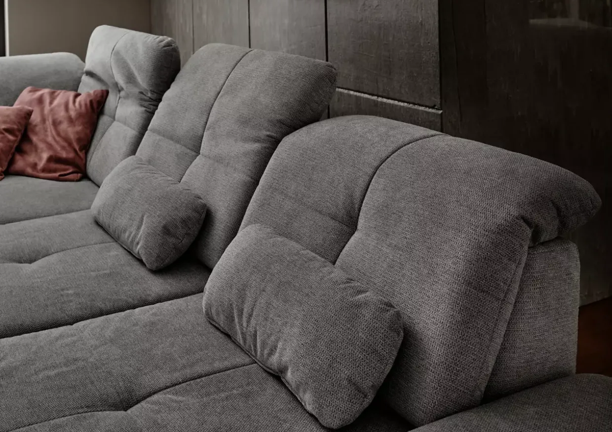 Ein aufklappbarer Anstellhocker bietet zusätzlichen Stauraum und erhöht die Vielseitigkeit dieser eleganten Polstergarnitur. Die Kombination aus hochwertigem Stoff und robustem Metall verleiht diesem Möbelstück eine moderne und zugleich zeitlose Anmutung. Die Möglichkeit der Armteilverstellung auf der linken Seite ermöglicht eine individuelle Anpassung für optimalen Sitzkomfort.