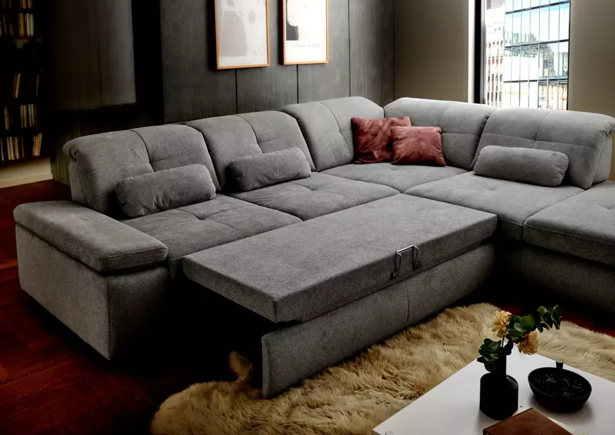 Die Polstergarnitur, ausgestattet mit einer komfortablen Federkernpolsterung, sorgt für ein angenehmes Sitzgefühl und unterstützt eine gesunde Körperhaltung. Für noch mehr Flexibilität bietet die 3-Sitzer-Variante eine praktische Querschläferfunktion, die sich ideal für unerwartete Übernachtungsgäste eignet.