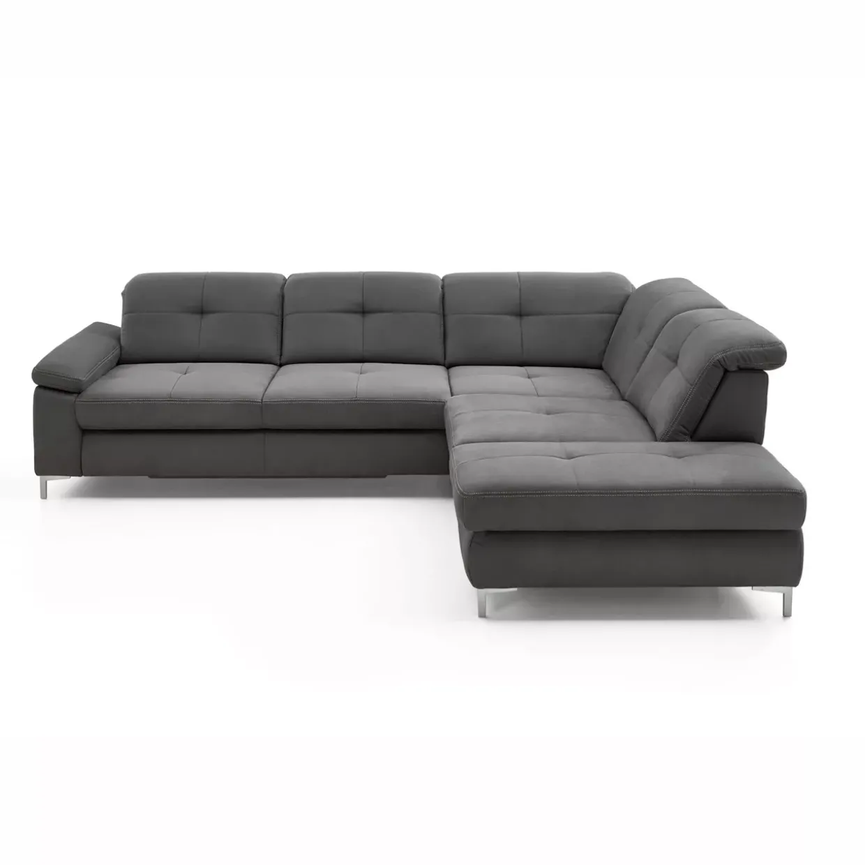 Die Polstergarnitur präsentiert sich in einem schlichten Uni-Muster, das sich harmonisch in verschiedene Wohnstile einfügt. Mit einer variablen Sitztiefe von 59 bis 79 cm passt sie sich individuell an Ihre Sitzgewohnheiten an.