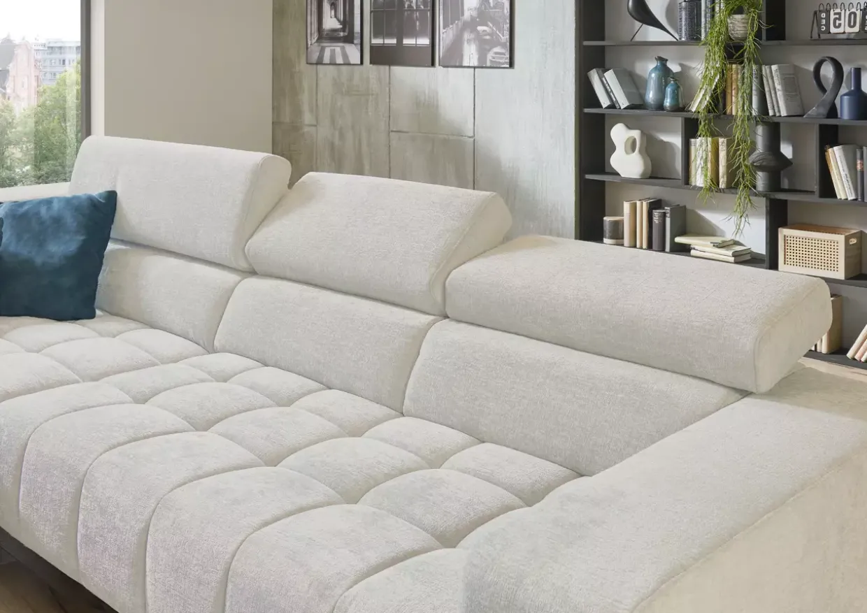 Passende Kissen sind auf Anfrage gegen Mehrpreis erhältlich, um das Gesamtbild abzurunden und individuellen Komfort zu erhöhen. Ein weiteres Highlight ist die Kopfpolsterverstellung, die flexibles Relaxen ermöglicht. Die Kombination aus robustem Gestell und durchdachten Details macht diese Polstergarnitur zu einem zuverlässigen Begleiter im Alltag.