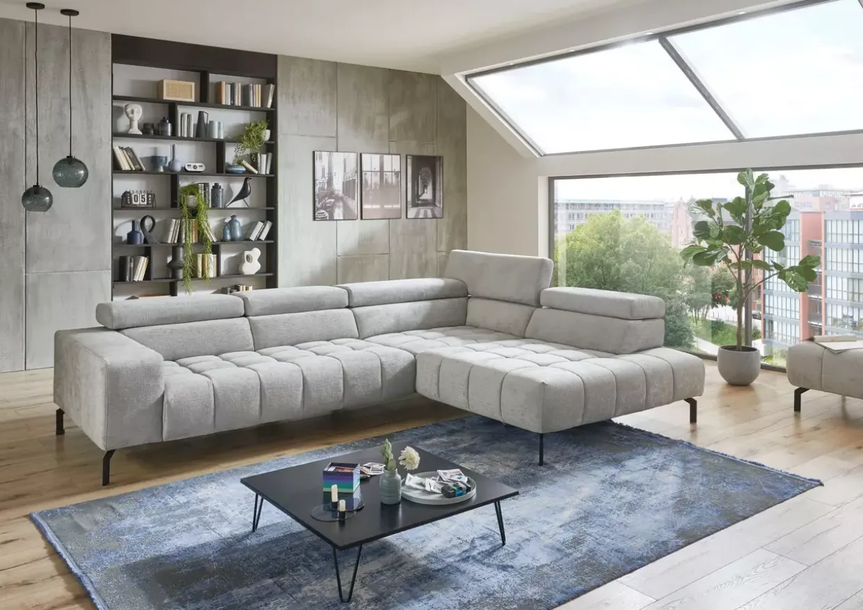 Ein besonderes Highlight ist die freistellbare Konstruktion, die Flexibilität bei der Raumgestaltung bietet. Die Rückenlehne ist echt bezogen und sorgt so für eine harmonische Optik aus jedem Blickwinkel. Verstellbare Kopfstützen ermöglichen es Ihnen, den Sitzkomfort individuell anzupassen und entspannte Stunden zu genießen.