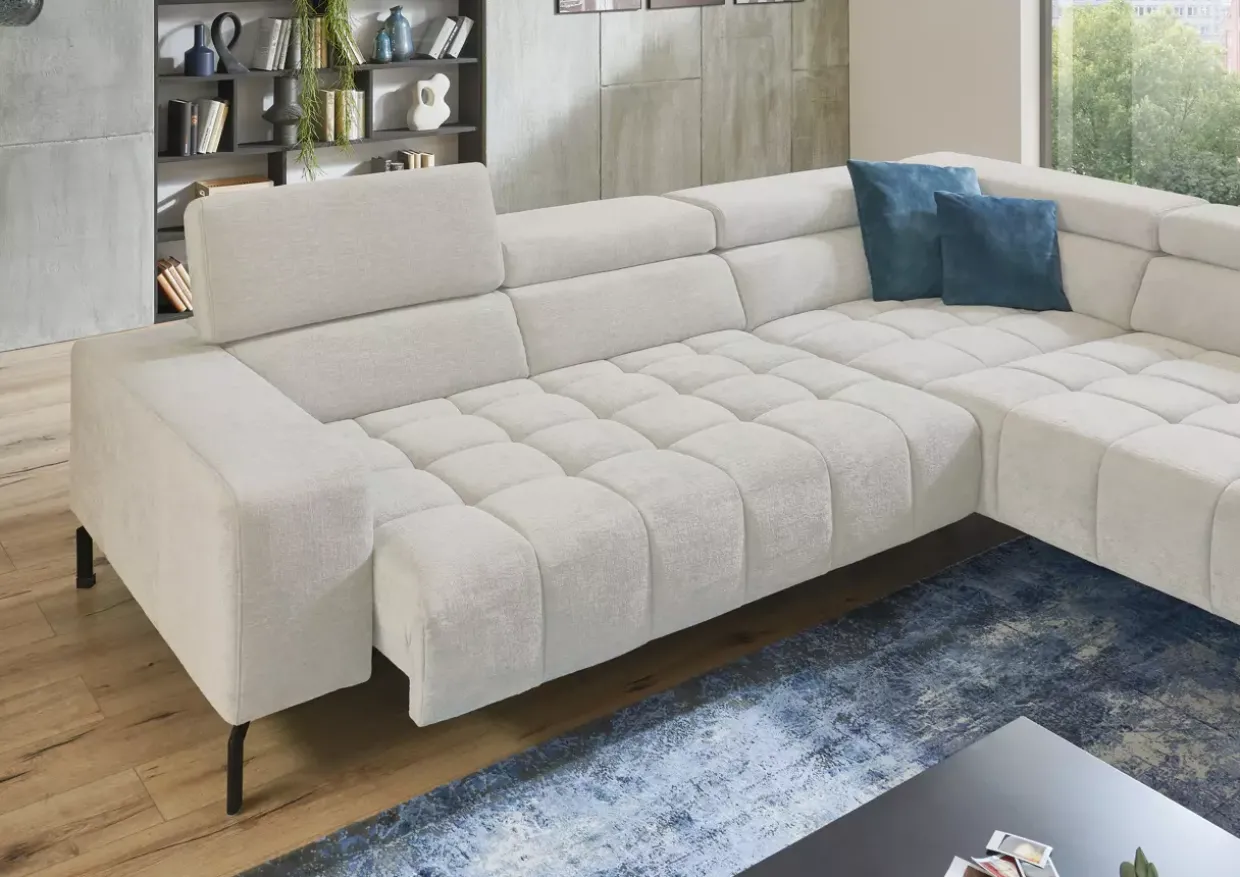 Ein besonderes Merkmal ist die motorisch ausziehbare Vorziehbank, die um 19 cm erweitert werden kann. So passt sich die Garnitur flexibel Ihren Bedürfnissen an. Die Kaltschaumfüllung sorgt dabei für eine angenehme Polsterung und langanhaltenden Sitzkomfort. Dank der Sitztiefenverstellung lässt sich die Sitzposition optimal anpassen, während das Gestell aus Hartholz und Holzwerkstoff für Stabilität und Langlebigkeit sorgt.