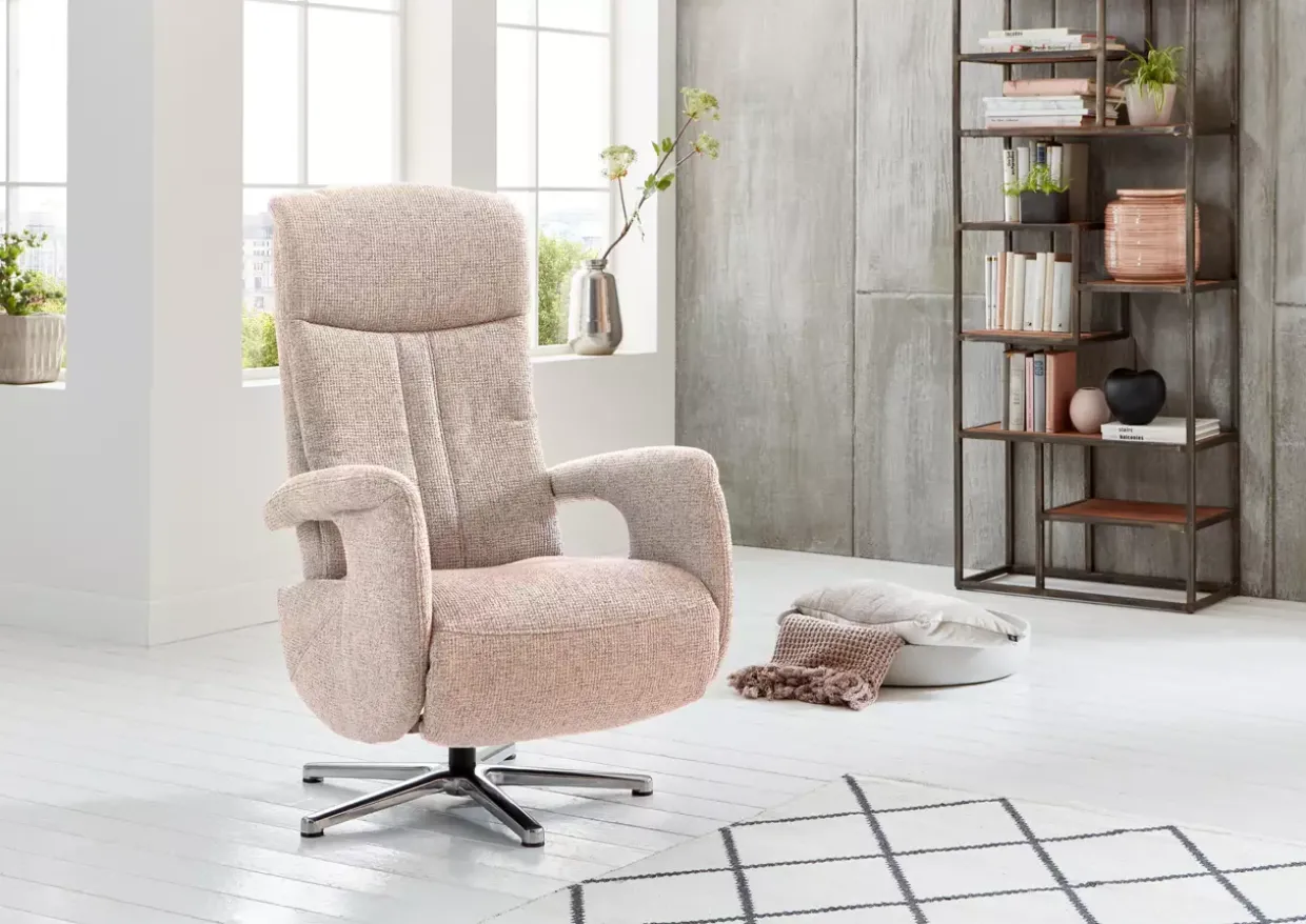 Eleganz trifft auf Funktionalität – der Relax-Sessel begeistert mit einer 360-Grad-Drehbarkeit, die Flexibilität im Wohnzimmer neu definiert. Die moderne Gestaltung in Famosa Siena und Aluminium verchromt fügt sich nahtlos in jede stilvolle Einrichtung ein. Das Zusammenspiel von Stoff und Metall verleiht dem Sessel eine zeitgemäße Anmutung und unterstreicht seine Langlebigkeit.