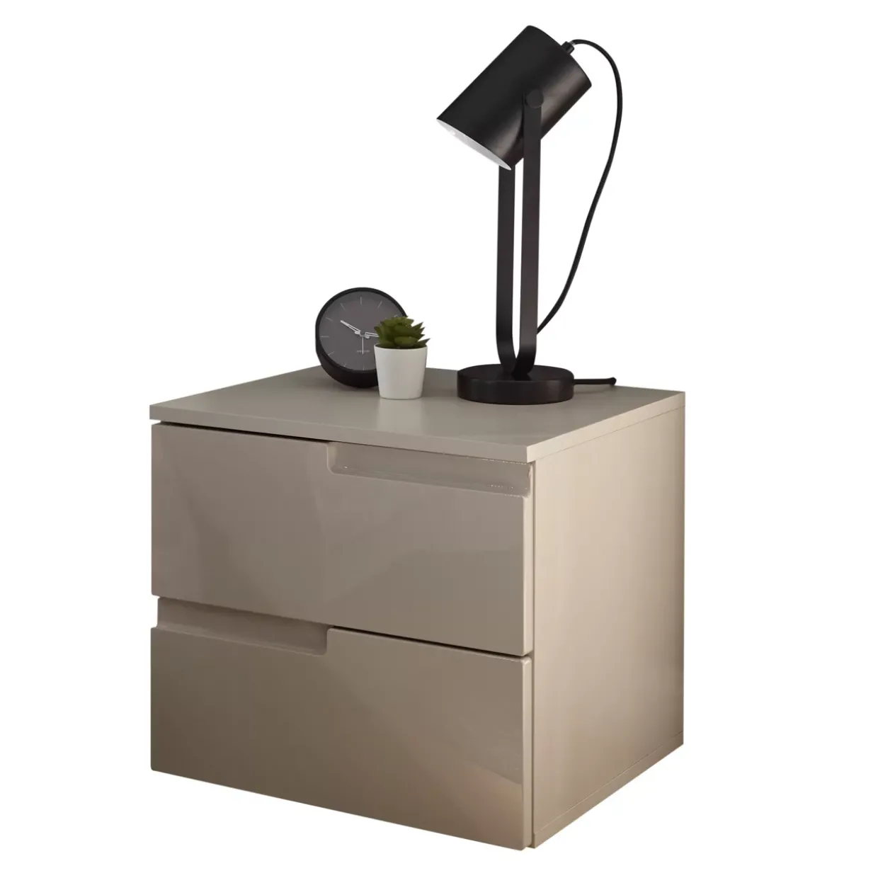 SELF JENNA497 Nako 2SK Champaner/Champagner HGL BHT ca. 46x 42×40 cmIn einer sanften Champagner Hochglanz-Optik erstrahlt die Nachtkommode Jenna, ein wahres Highlight für jedes moderne Schlafzimmer. Mit ihrem stilvollen Design fügt sie sich nahtlos in unterschiedliche Einrichtungsstile ein und bietet eine geschmackvolle Ergänzung zu Ihrem Interieur. Gefertigt aus robustem Holzwerkstoff, überzeugt die Nachtkommode durch ihre Langlebigkeit und Stabilität. Besonders die melaminharzbeschichtete Oberfläche sorgt für Widerstandsfähigkeit und eine pflegeleichte Handhabung. Ein weiterer Vorteil ist der integrierte Türdämpfer, der für ein sanftes und geräuschloses Schließen der Türen sorgt und somit den Komfort im Alltag erhöht. Die Nachtkommode ist in einer praktischen Anzahl von 2 Stück erhältlich, ideal für die symmetrische Platzierung an beiden Seiten des Bettes. Die edle Farbgebung in verschiedenen Champagner-Nuancen verleiht dem Raum eine warme und einladende Atmosphäre. Dank ihrer durchdachten Gestaltung bietet die Nachtkommode Jenna nicht nur optische Vorzüge, sondern auch ausreichend Stauraum für Ihre persönlichen Gegenstände. So können Sie Ordnung und Stil gekonnt miteinander verbinden. Die Kombination aus hochwertigen Materialien und funktionalem Design macht Jenna zu einer wertvollen Bereicherung für Ihr Zuhause.