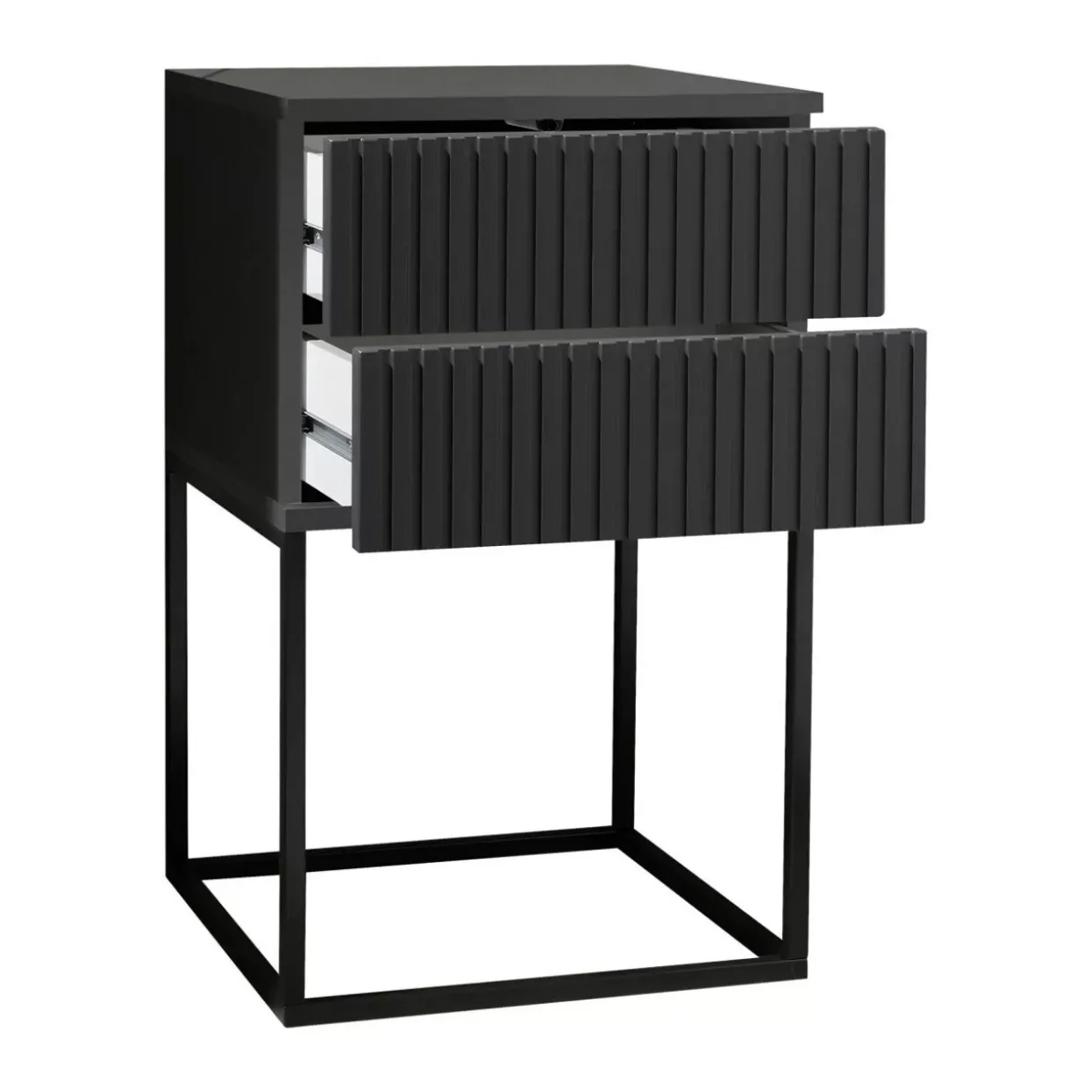Hergestellt aus einer Kombination von Holzwerkstoff und Metall, verbinden die Nachtkommoden Funktionalität und Ästhetik auf beeindruckende Weise. Diese Materialwahl sorgt für Langlebigkeit und Robustheit, ohne dabei auf eine ansprechende Optik zu verzichten.