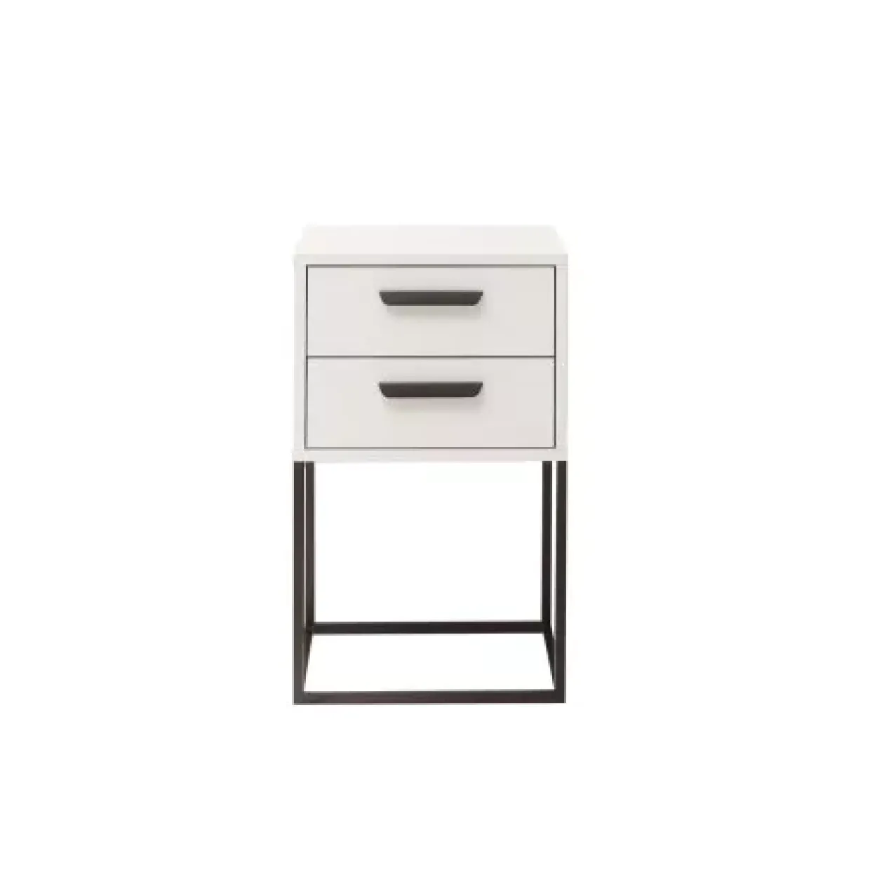 Mit einem stilvollen Loft-Charakter präsentiert sich die Suna Nachtkommode, die in einem eleganten Zusammenspiel aus Weiß und Schwarz Akzente setzt. Diese Farben harmonieren perfekt und verleihen Ihrem Raum eine moderne und zugleich zeitlose Note. Die Kommode besteht aus einer exquisiten Kombination von Holzwerkstoff und Metall. Diese Materialien garantieren nicht nur Stabilität, sondern auch eine ansprechende Ästhetik, die sich in verschiedenen Wohnstilen integrieren lässt.
