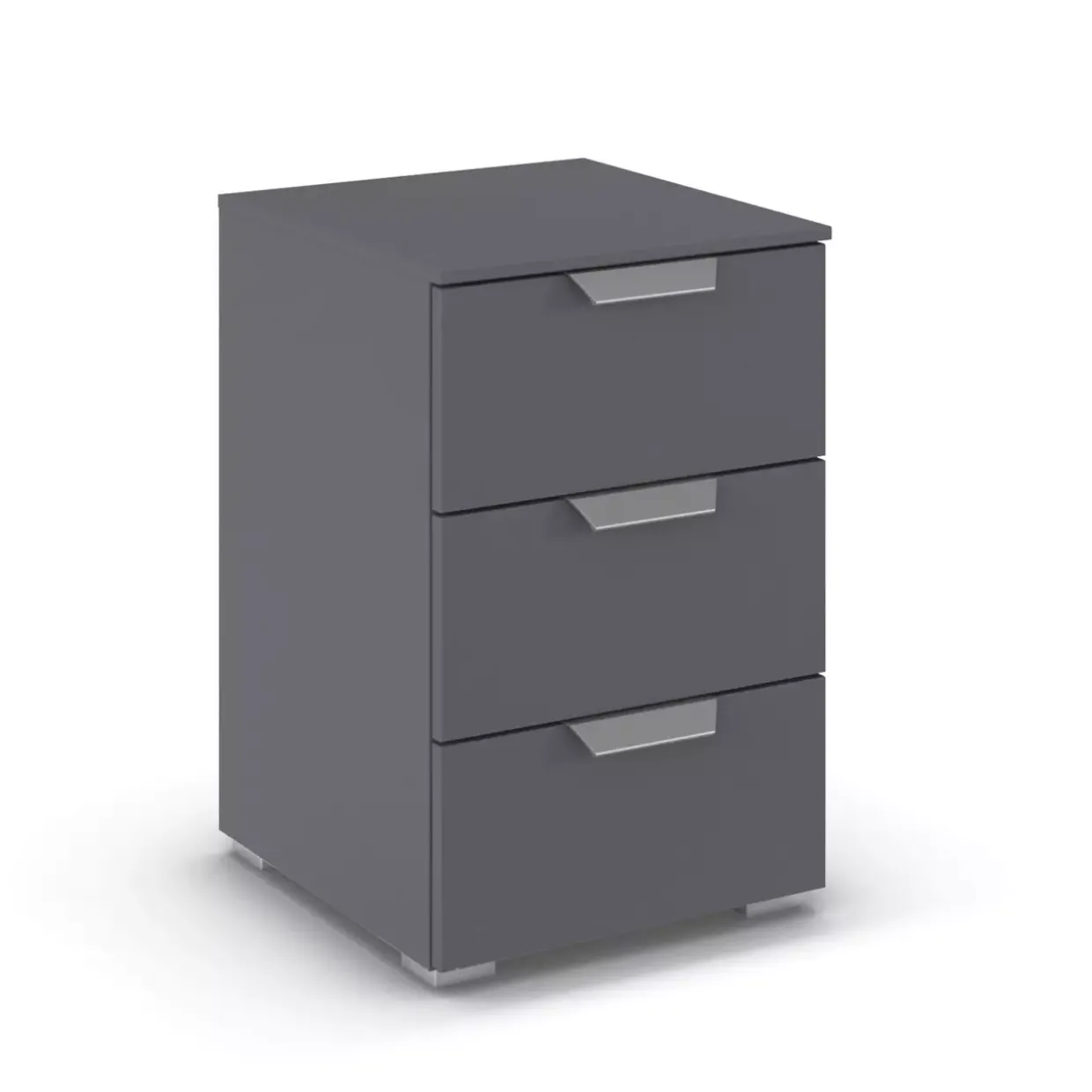 Grau-metallic Dekor trifft auf modernen Stil: Der Aditio Nachttisch vereint zeitgenössisches Design mit funktionaler Eleganz. Drei Schubkästen, ausgestattet mit einem Selbsteinzug und Dämpfung, bieten nicht nur reichlich Stauraum, sondern auch ein Gefühl von Leichtigkeit und Komfort. Dank des Soft-Close-Systems schließen die Schubkästen fast lautlos und schonend, was den täglichen Gebrauch besonders angenehm gestaltet.