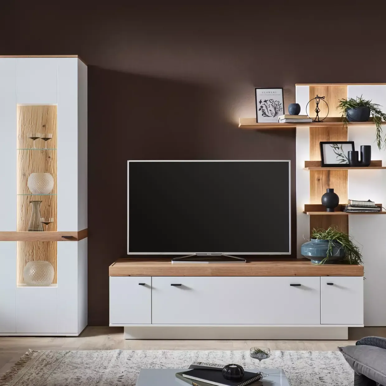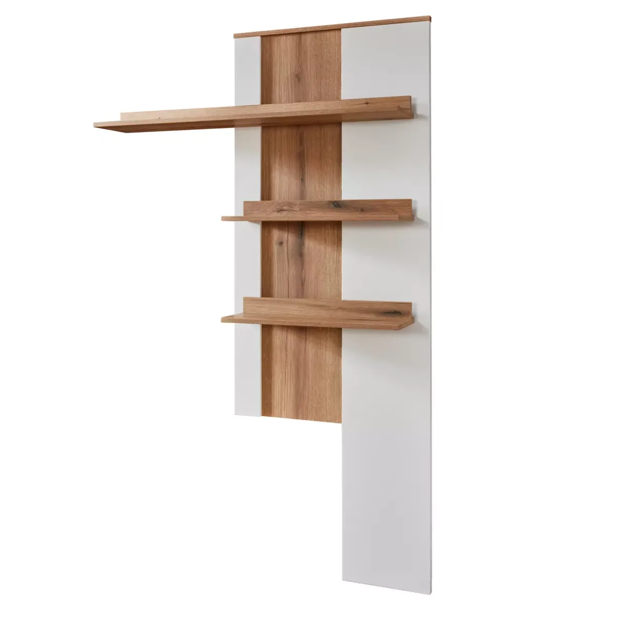 Ein Hauch von Raffinesse: Das Bilbao Paneel beeindruckt mit seiner stilvollen Kombination aus Weiß Dekor und Eiche Evoke. Dieses Möbelstück fügt sich harmonisch in konventionelle Einrichtungsstile ein und bietet gleichzeitig eine zeitlose Eleganz. Die Struktur aus hochwertigem Holzwerkstoff sorgt für Stabilität und Langlebigkeit, während die sichtbaren Rückwände in sandgestrahlter Optik einen besonderen Akzent setzen.Drei Paneele stehen zur Verfügung, um Ihrem Raum eine persönliche Note zu verleihen. Die vielseitigen Farben ermöglichen eine nahtlose Integration in unterschiedliche Wohnkonzepte. Ob im Wohnzimmer, Flur oder Schlafzimmer – das Bilbao Paneel ist ein wahrer Alleskönner, der durch seine hochwertige Verarbeitung überzeugt.Ein besonderes Highlight ist die optionale Beleuchtung, die auf Wunsch erhältlich ist. Diese kann das Ambiente zusätzlich aufwerten und gezielt Akzente setzen. Wer Wert auf ein stimmungsvolles Wohnambiente legt, trifft mit dieser Option die richtige Wahl.Das Bilbao Paneel vereint Funktionalität mit ästhetischem Design und bietet eine attraktive Lösung für die moderne Wohnraumgestaltung. Lassen Sie sich von der zeitlosen Schönheit und der hochwertigen Verarbeitung dieses Möbelstücks überzeugen und genießen Sie die vielen Möglichkeiten, die dieses Paneel bietet.