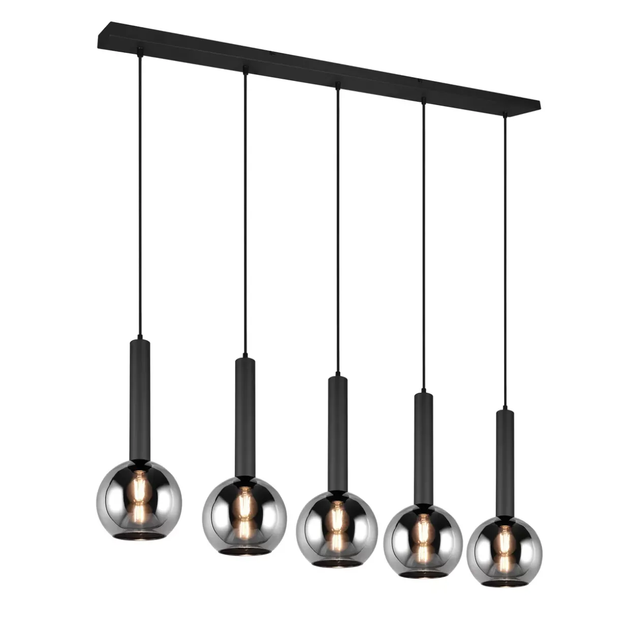In elegantem Schwarz erscheint die moderne Pendelleuchte, die in jedem Raum eine stilvolle Atmosphäre schafft. Gefertigt aus einer harmonischen Kombination von Glas und Chrom-Metall, bietet sie nicht nur ein ästhetisches, sondern auch ein langlebiges Design. Der rauchfarbige Glasschirm sorgt für eine sanfte Lichtstreuung, die sich ideal für Wohn- und Essbereiche eignet.