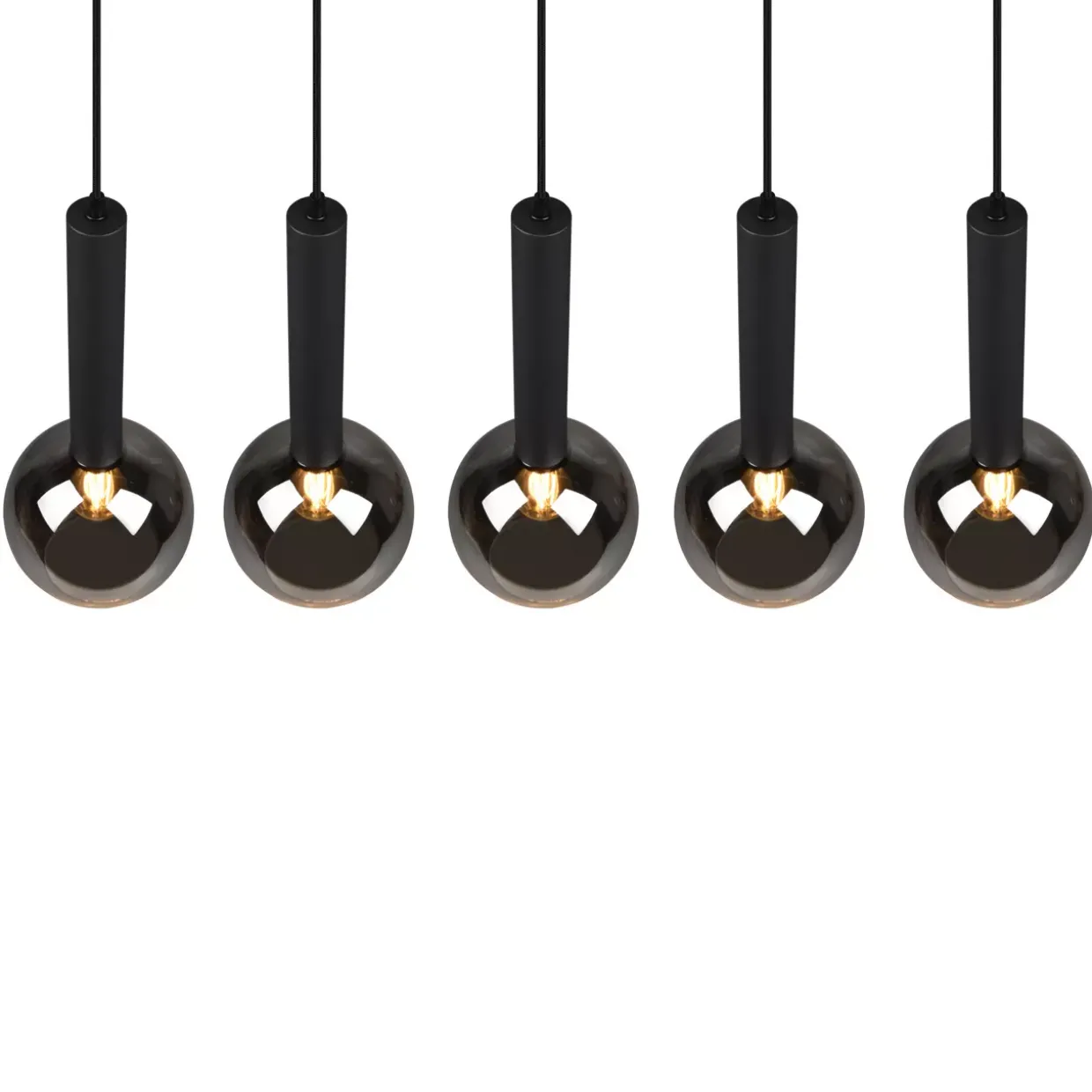 Zeitlos, schlicht und dennoch charakteristisch. Die moderne Pendelleuchte CLAYTON zieht durch die Kombination aus edlen Glasschirmen und dunklem Metall alle Blicke auf sich. Die runde Form der fünf Glasschirme gibt das Licht auf eine besonderen Weise an ihre Umgebung ab, sodass eine gemütliche Atmosphäre geschaffen wird. Über dem Wohnzimmertisch oder mittig über dem Esstisch platziert, kommt die Leuchte optimal zur Geltung und erschafft in Ihrem Zuhause neue Lieblingsorte. Die Gläser in Chrom bedampft in Kombination mit schwarz mattem Metall passen sich mühelos jedem Wohnstil und Farbkonzept an und lassen sich gut kombinieren. Für eine energiesparende Beleuchtung empfiehlt sich die Verwendung eines LED Leuchtmittels. Diese sind eine optimale Alternative zu herkömmlichen Halogen Leuchtmitteln und stehen für eine hohe Lichtqualität und eine Energieeinsparung von bis zu 80%. Zusätzlich profitieren Sie bei LED Leuchtmitteln von einer langen Lebensdauer, einer geringen Wärmeentwicklung und schonen gleichzeitig die Umwelt.
