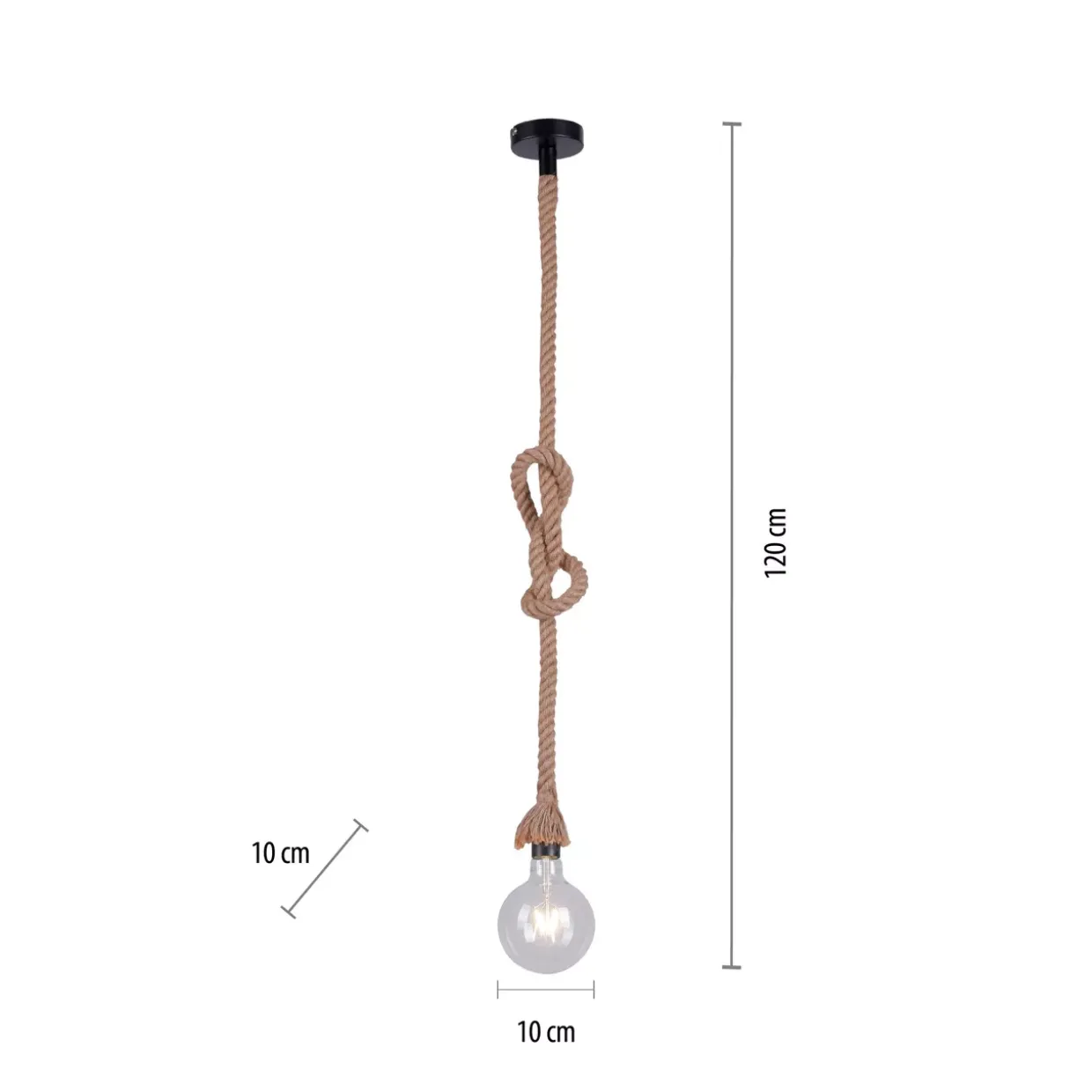 Mit einem Durchmesser von 10 cm ist die Rope-Pendelleuchte ideal für kleinere Räume oder als gezielte Lichtquelle über Arbeitsbereichen und Esstischen. Die E27-Fassung bietet Flexibilität bei der Wahl des passenden Leuchtmittels, sodass Sie je nach gewünschter Lichtstärke und Farbtemperatur auswählen können. Beachten Sie bitte, dass das Leuchtmittel nicht im Lieferumfang enthalten ist, was Ihnen jedoch die Freiheit gibt, Ihre persönliche Lichtgestaltung zu verwirklichen.