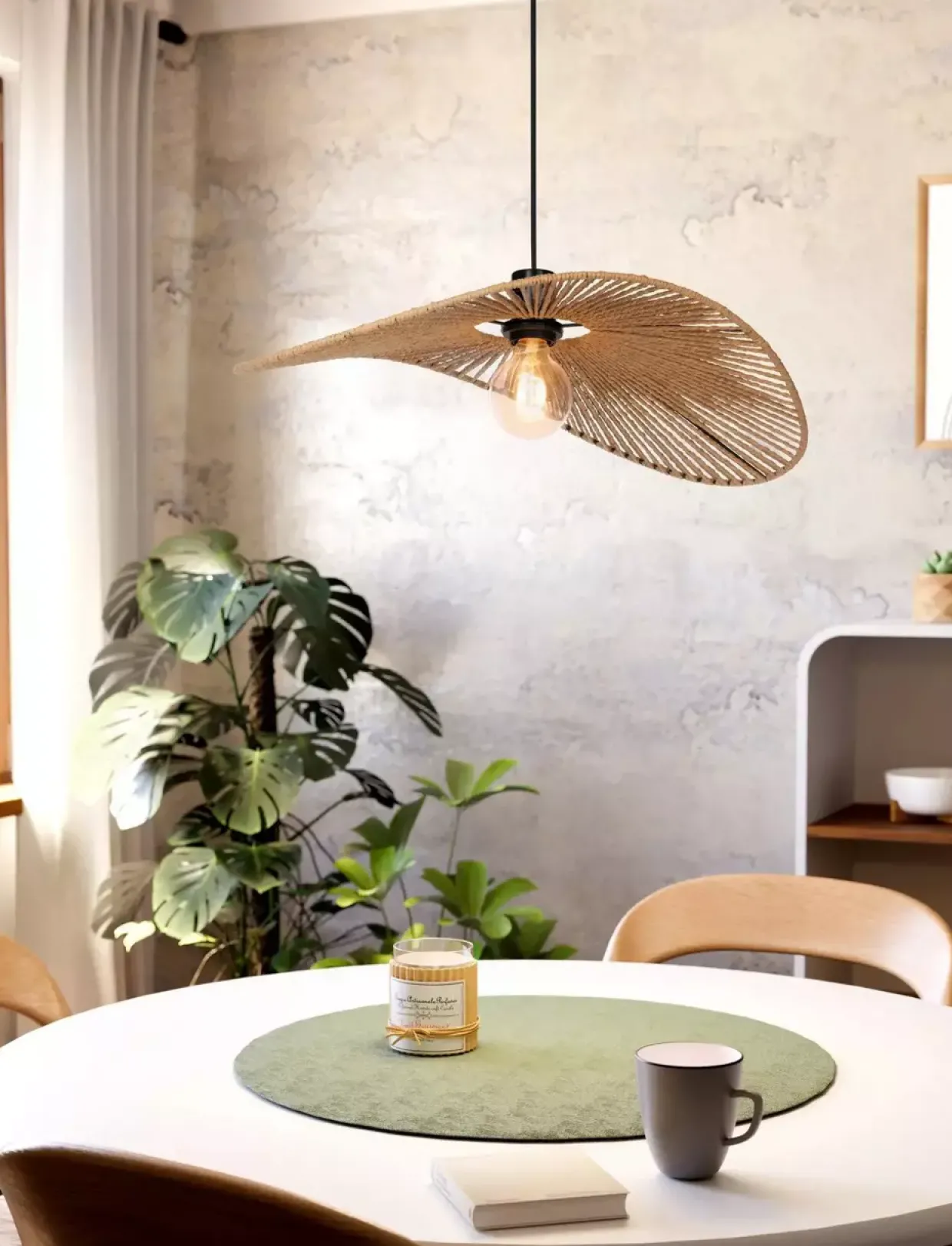 Ganzjährig einsetzbar, fügt sich die Pendelleuchte harmonisch in verschiedene Einrichtungsstile ein, ohne sich aufzudrängen. Der natürliche Farbton unterstreicht die Schlichtheit und Vielseitigkeit dieses Beleuchtungselements. Dank der Fassung E27 können Sie ein LED-Leuchtmittel Ihrer Wahl einsetzen, um Energieeffizienz mit modernem Design zu vereinen.