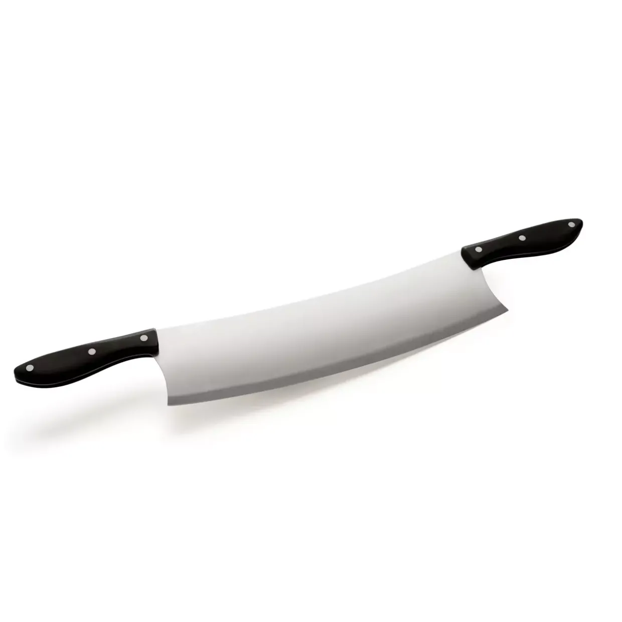 Eine gebogene Edelstahlklinge, die durch ihre Eleganz und Effizienz besticht, macht das Pizza Wiegemesser zu einem unverzichtbaren Küchenhelfer. Mit seinem modernen Stil und der harmonischen Kombination aus schwarz und silber fügt es sich nahtlos in jede Kücheneinrichtung ein. Die genieteten Doppelgriffe bieten nicht nur eine ansprechende Optik, sondern auch Stabilität und Sicherheit bei der Handhabung.