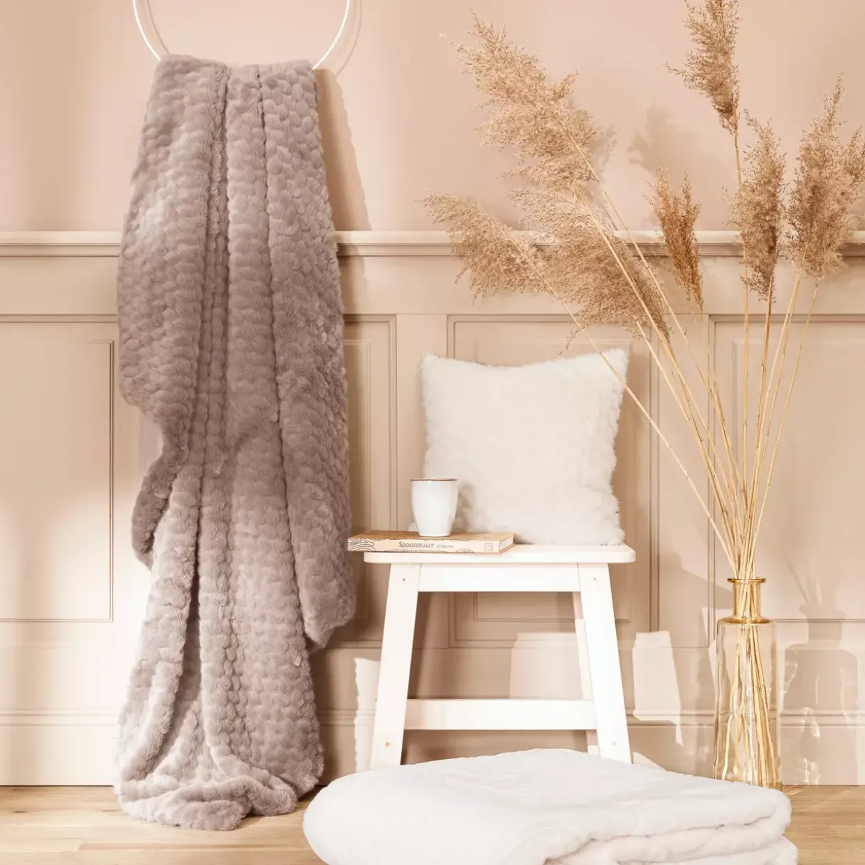 Taupe als zeitlose Farbe verleiht dem Plaid Modell MINK eine elegante Note, die sich harmonisch in jede moderne Einrichtung einfügt. Das rechteckige Design und der moderne Stil machen es zu einem vielseitigen Accessoire, das sowohl im Wohnzimmer als auch im Schlafzimmer seinen Platz findet. Gefertigt aus hochwertigem Textil, besticht das Plaid durch seinen Webpelz, der aus Synthetikfasern gewebt ist und für eine besonders weiche Haptik sorgt.
