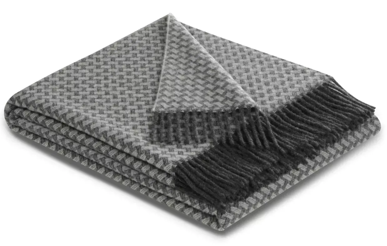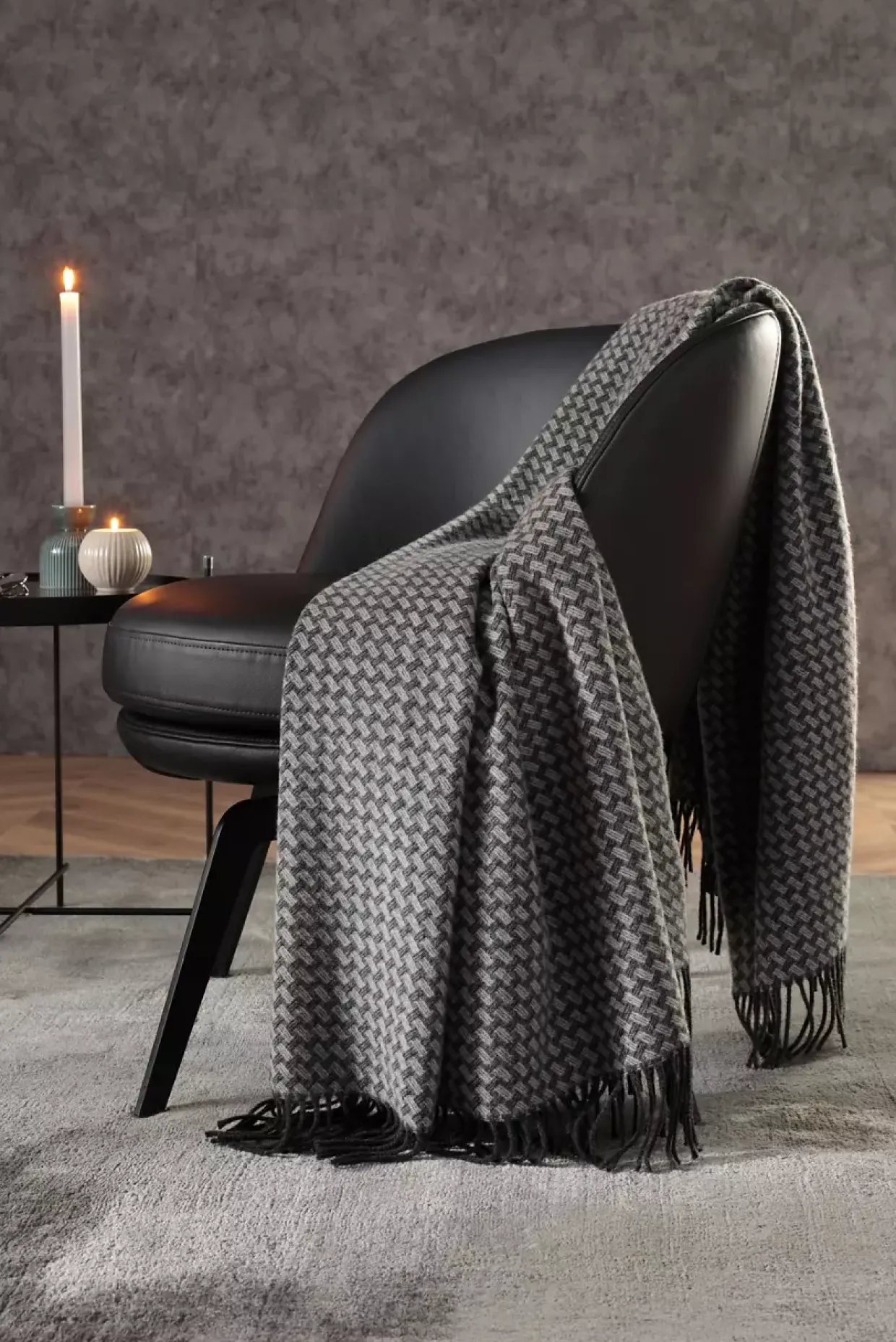 Vivo antracite – eine Farbe, die Eleganz und Moderne vereint. Das rechteckige Plaid im modernen Stil bringt das ganze Jahr über Gemütlichkeit in Ihr Zuhause. Der edle Materialmix aus 70% Kaschmir und 30% Schurwolle verspricht nicht nur angenehme Wärme, sondern auch ein luxuriöses Kuschelvergnügen. Das graphische Muster in raffinierter 3D-Flechtoptik verleiht der Decke eine besondere Note, während die feinen, langen Fransen in Schwarz den eleganten Charakter zusätzlich unterstreichen.