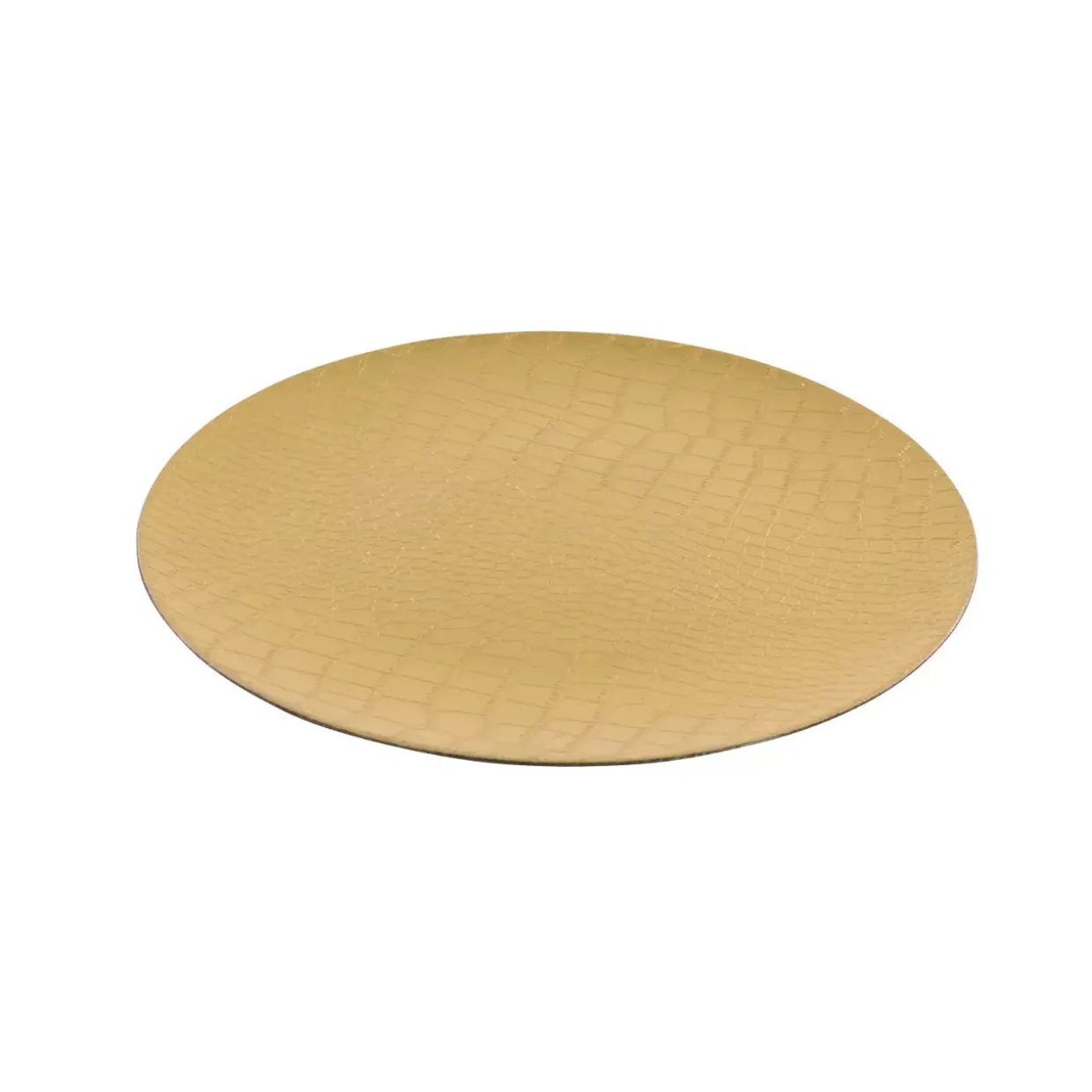 Ein beeindruckendes Design in Schlangenoptik verleiht diesem Platzteller seinen unverwechselbaren modernen Stil. Der Platzteller, gefertigt aus hochwertigem Kunststoff, besticht durch seine Eleganz und Robustheit. Mit einem Durchmesser von 33 cm bietet er ausreichend Platz, um jedem Gedeck einen Hauch von Luxus zu verleihen. Die goldene Farbgebung sorgt für ein edles Ambiente und lässt sich mühelos in verschiedenste Tischdekorationen integrieren.