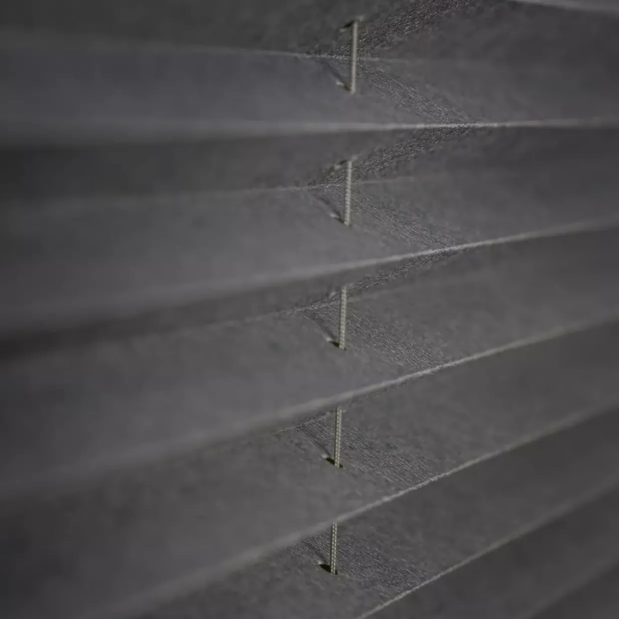 Ein Zusammenspiel aus robustem Metall und weichem Stoff verleiht den Plissees Stabilität und Ästhetik zugleich. Die verwendeten Synthetikfasern punkten durch ihre pflegeleichten Eigenschaften und garantieren Langlebigkeit. Diese Materialkombination macht das Produkt besonders widerstandsfähig gegenüber äußeren Einflüssen, sodass es sowohl in Wohn- als auch in Arbeitsbereichen eingesetzt werden kann.