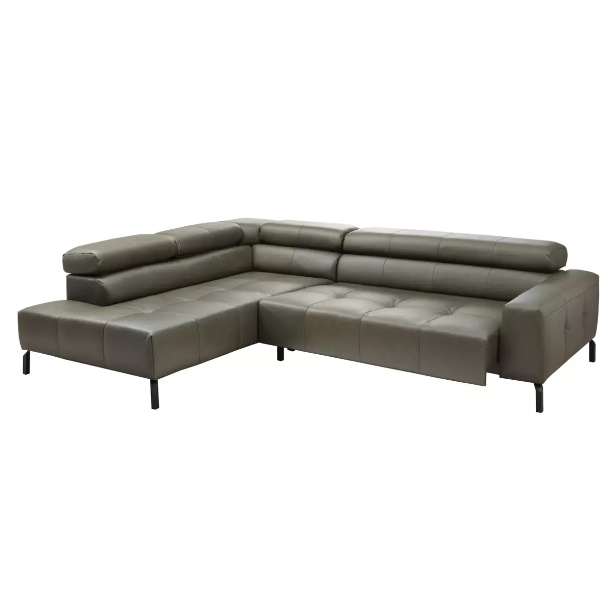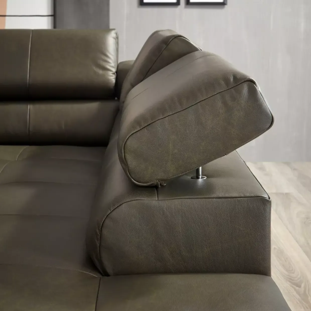 Vicenca olive verleiht der Polstergarnitur Cleveland einen Hauch von natürlicher Eleganz, der in jedem Loft-Ambiente ein stilvolles Statement setzt. Die legere, weiche Polsterung aus hochwertigem PUR-Schaum bietet einen unvergleichlichen Sitzkomfort, der zum Verweilen einlädt. Der subtile Kontrast zwischen dem edlen Leder und den schwarzen, mattierten Metallelementen verleiht dem Design eine moderne Note.