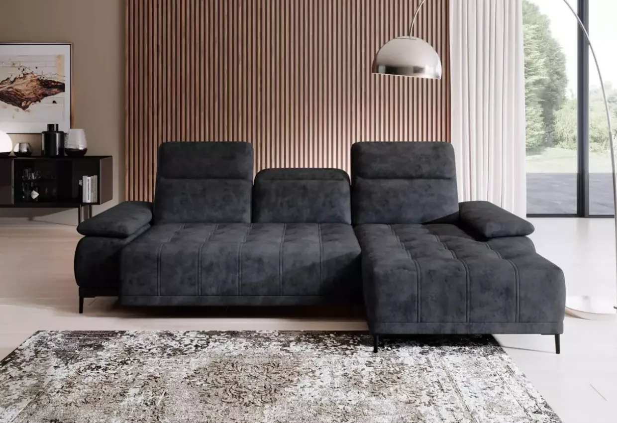 Salvador Anthracite und Schwarz harmonieren perfekt und ergänzen die moderne Inneneinrichtung. Ein weiteres bemerkenswertes Merkmal ist die integrierte Kopfstützenvorrichtung. Drei verstellbare Kopfstützen bieten individuellen Komfort und passen sich Ihren Bedürfnissen an.